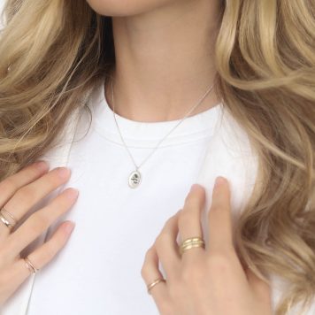 - Pendant measures 7/16″ x 1/4″ including bail