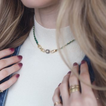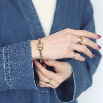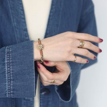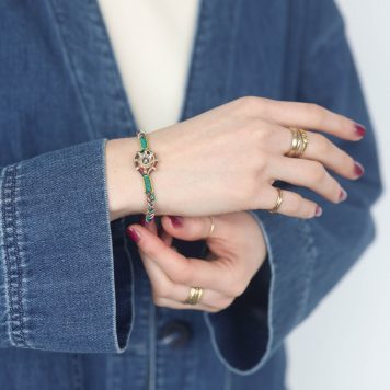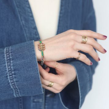 Described as “textile jewelry,” Marie Laure Chamorel’s unique and tedious construction sets her work apart from other designs. Her extensive use of different materials gives the pieces an eccentric appeal. New York and Paris flea markets render antique embroidery, lace, pearls, and other cabochons which are tested as prototypes in her Parisian studio. From there, the ornate materials are developed into something inimitable. We love how Marie Laure Chamorel’s designs offer an easy, wearable layer of texture on the daily.