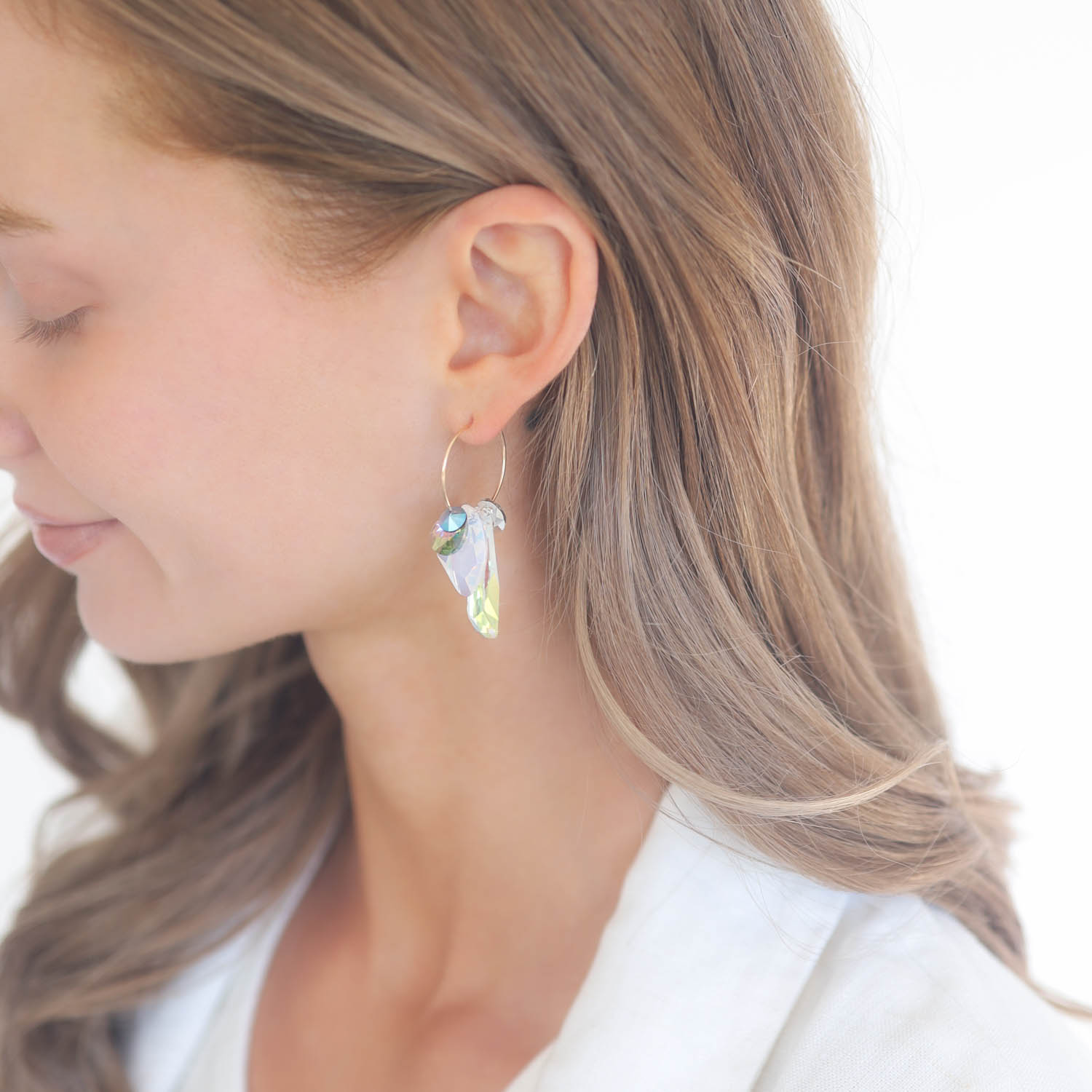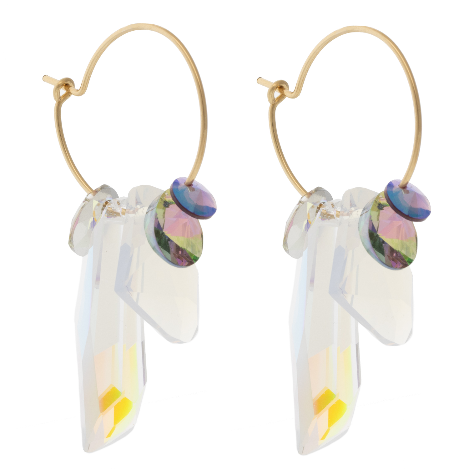 A magical array of lavender-hued colors radiates from these luxurious, light-catching crystals, strung on a thin, gold hoop. These mystical earrings are perfect for special events or whenever you need a bit of color in your life.