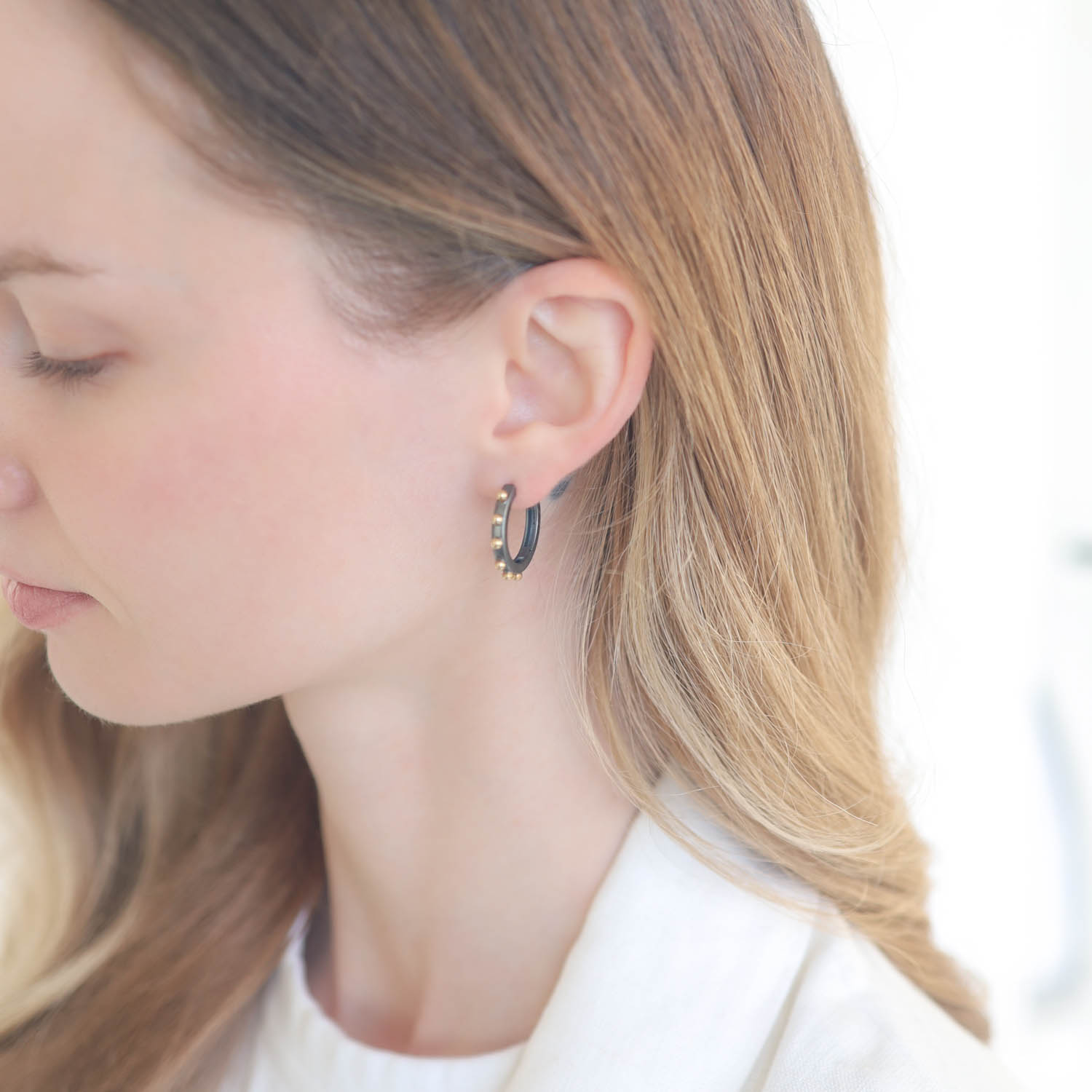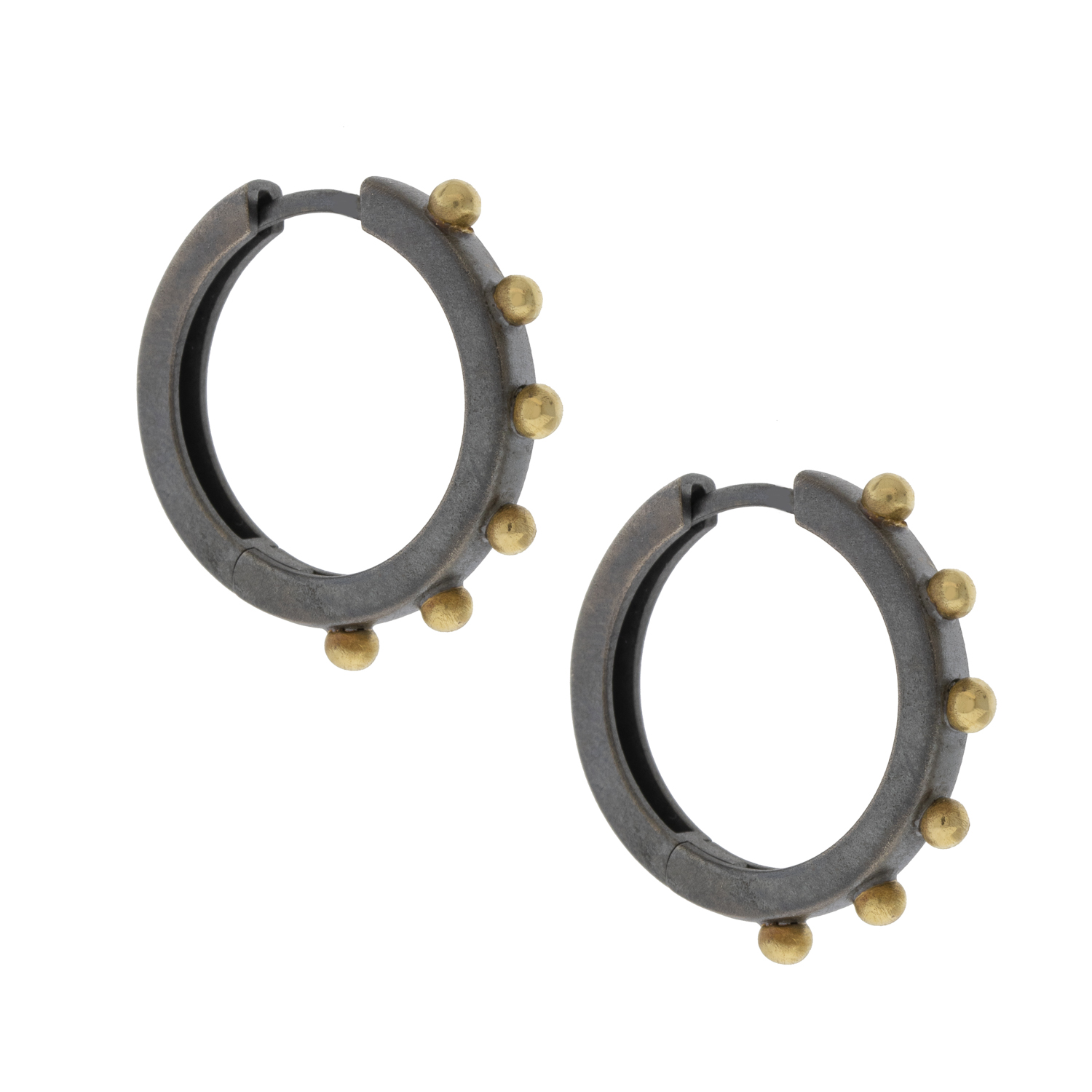 Gold dots set on large silver huggie hoops are perfect everyday staples for mixed-metal lovers.