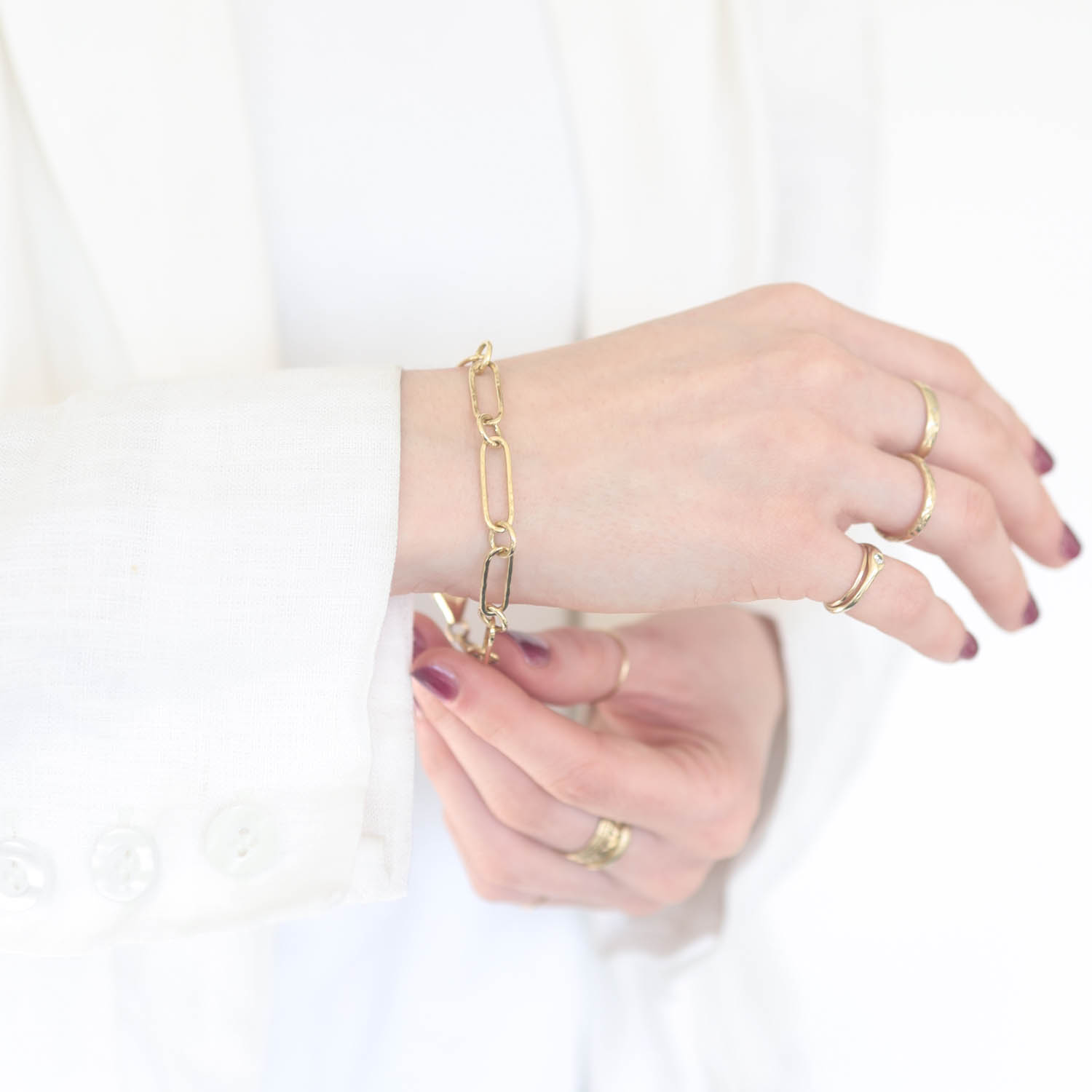 Alternating shape links make up this bracelet, putting a spin on this beloved classic. Its the perfect piece for layering up or to be worn on its own.