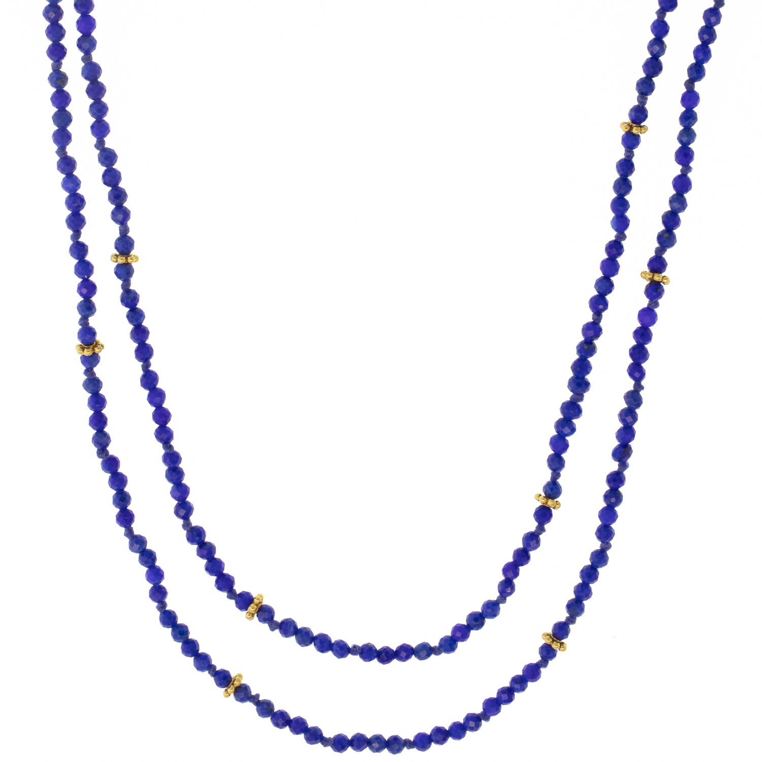 Petite lapis beads create the ideal layering piece, able to be doubled up or worn long.