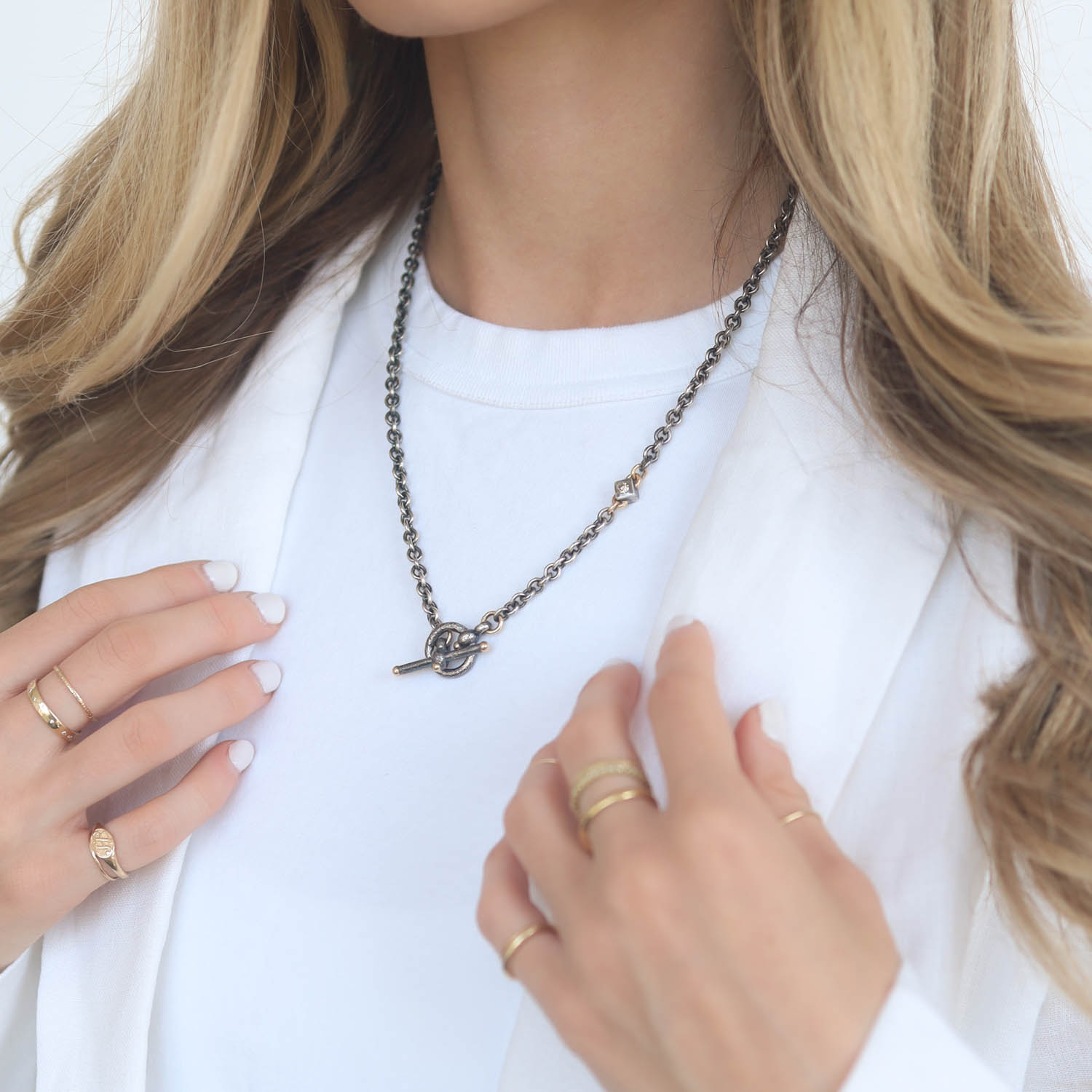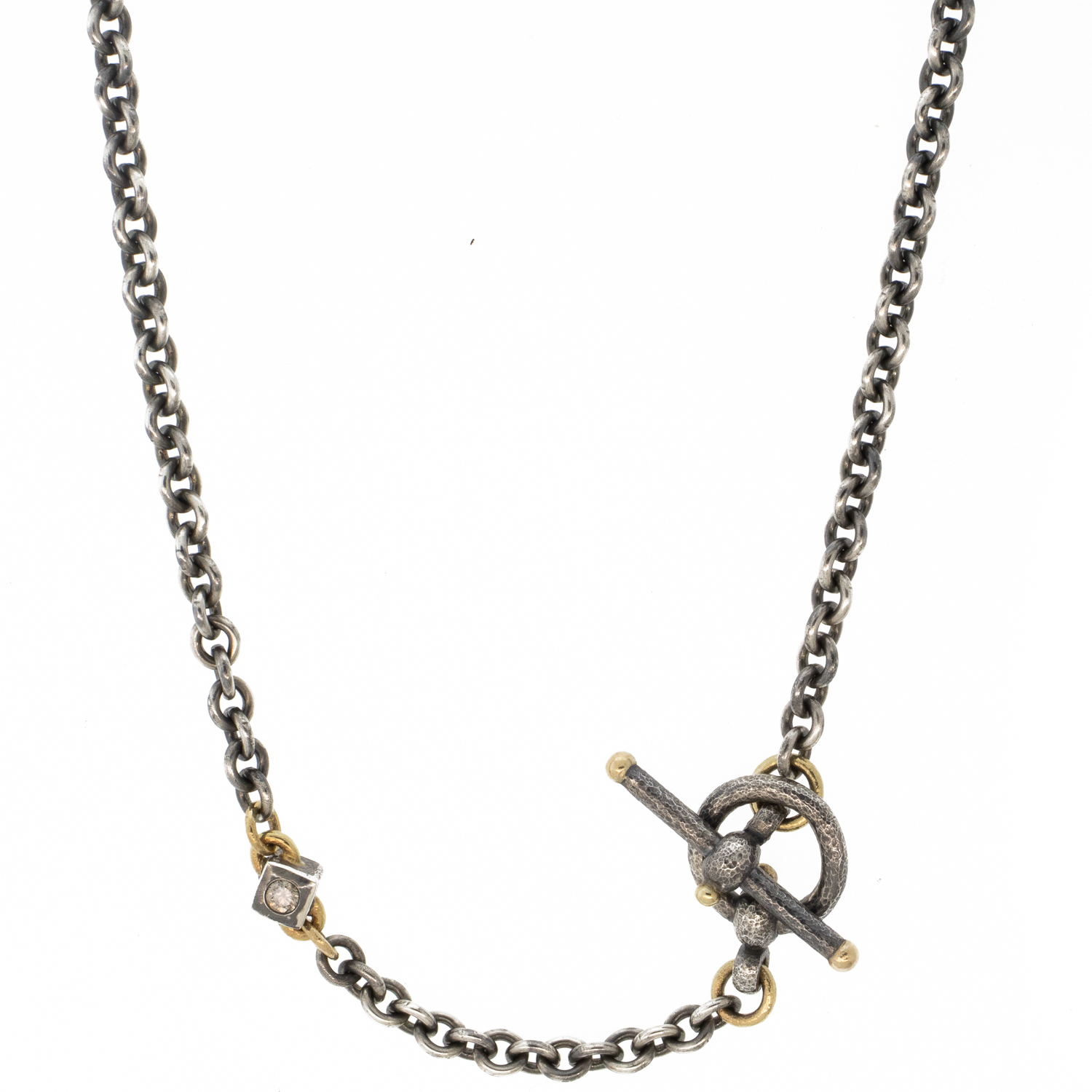 This rustic chain is perfect for displaying your favorite pendants, complete with a champagne diamond accent.