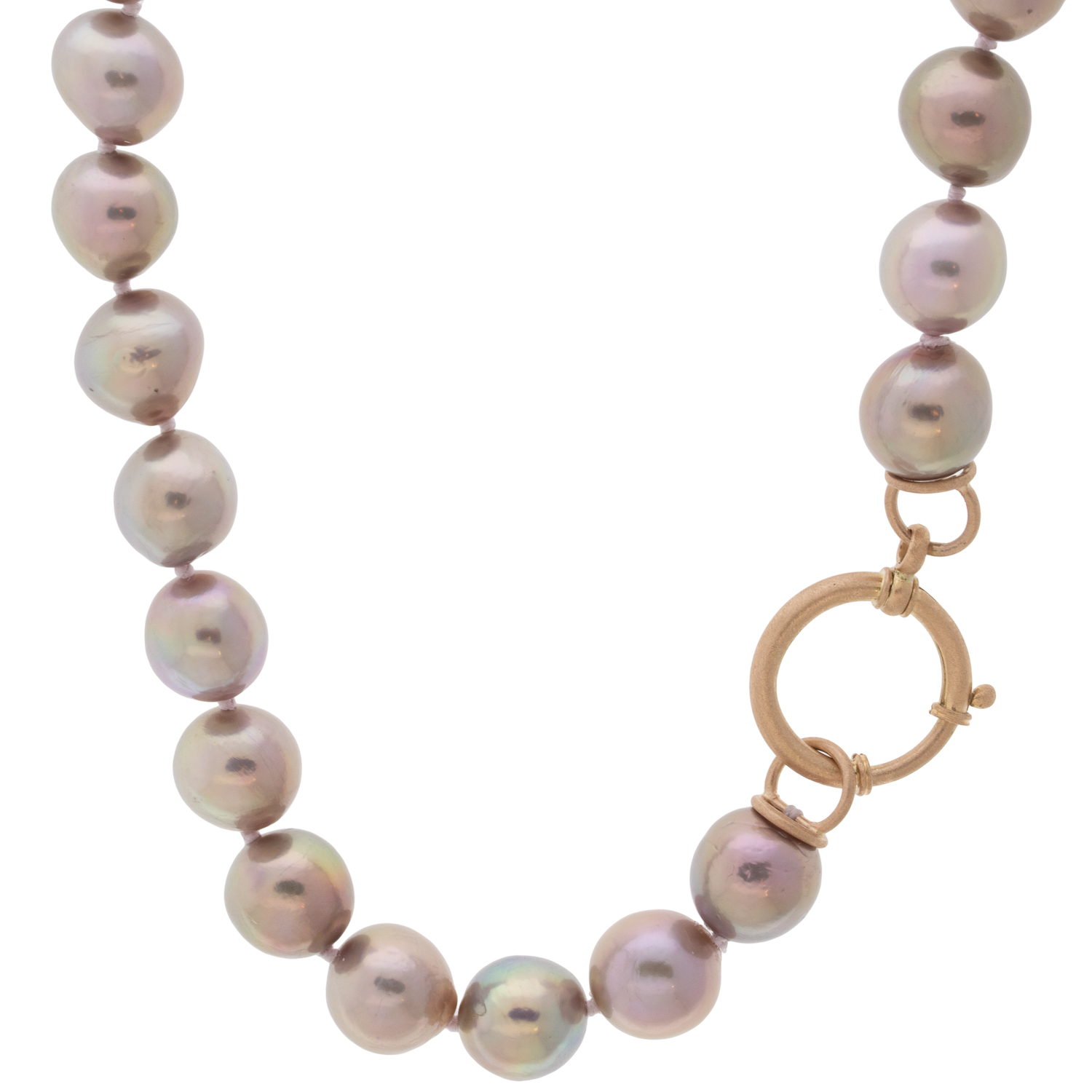 Round pink pearls are strung together to create a timeless masterpiece. Always in style, these uniquely stunning pearls are sure to last.