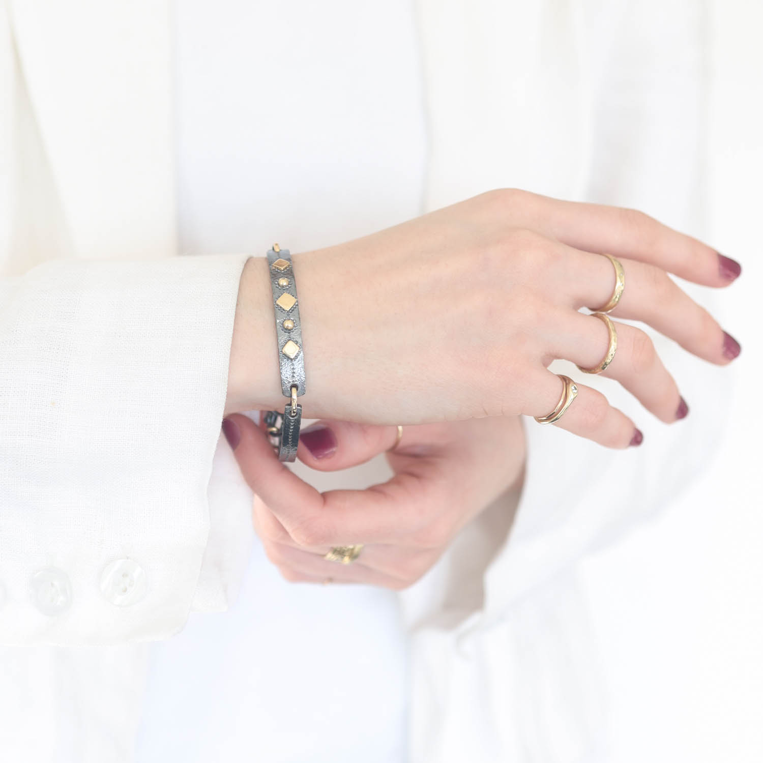 A classic bangle, remixed into a fresh, modern design with rustic elements.