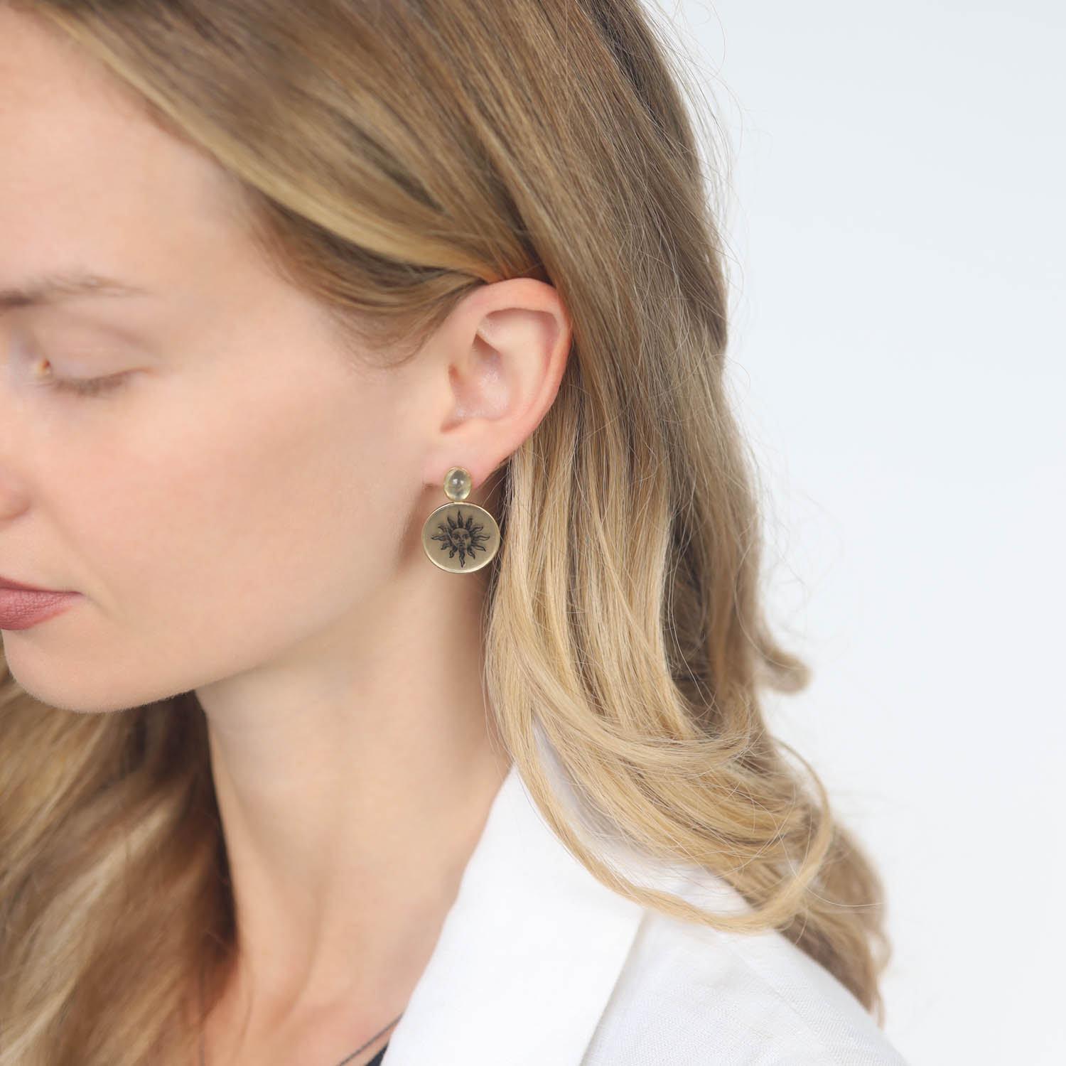SKU: OE-Celestial-Moonstone See more by Anzu See all Earrings, JewelrySee others with metal color yellowSee others tagged moonstone