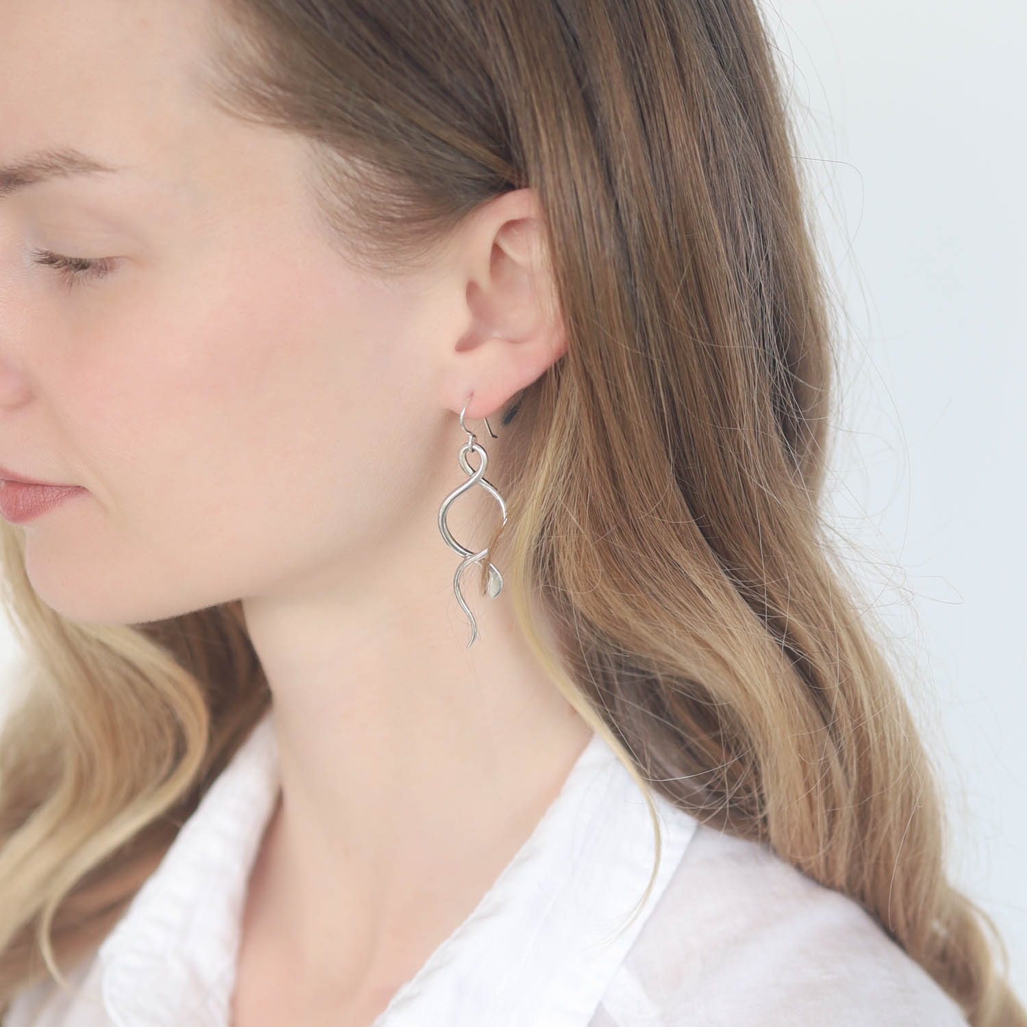 Sleek and modern, these elegant silver serpent dangle earrings make a statement with minimal effort.