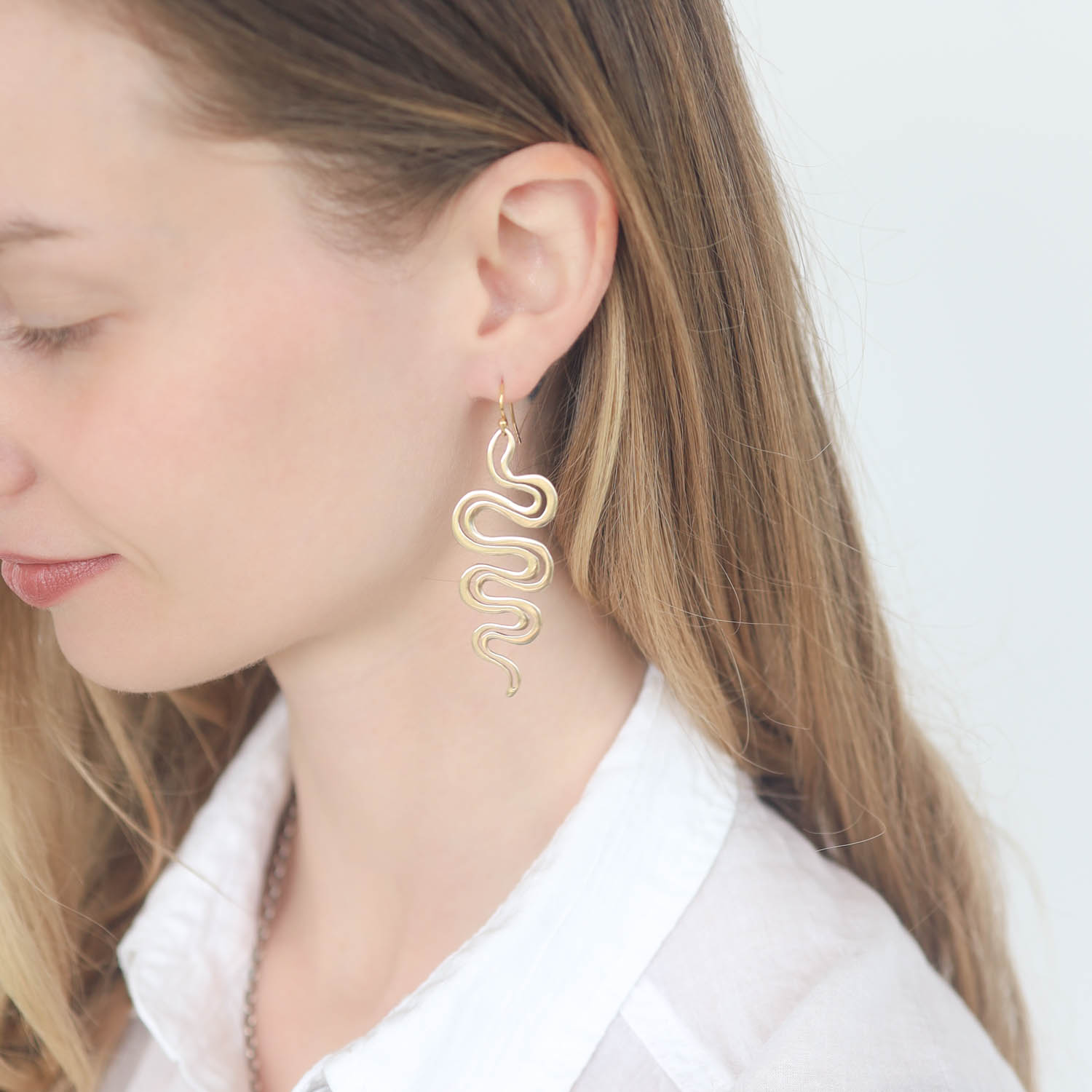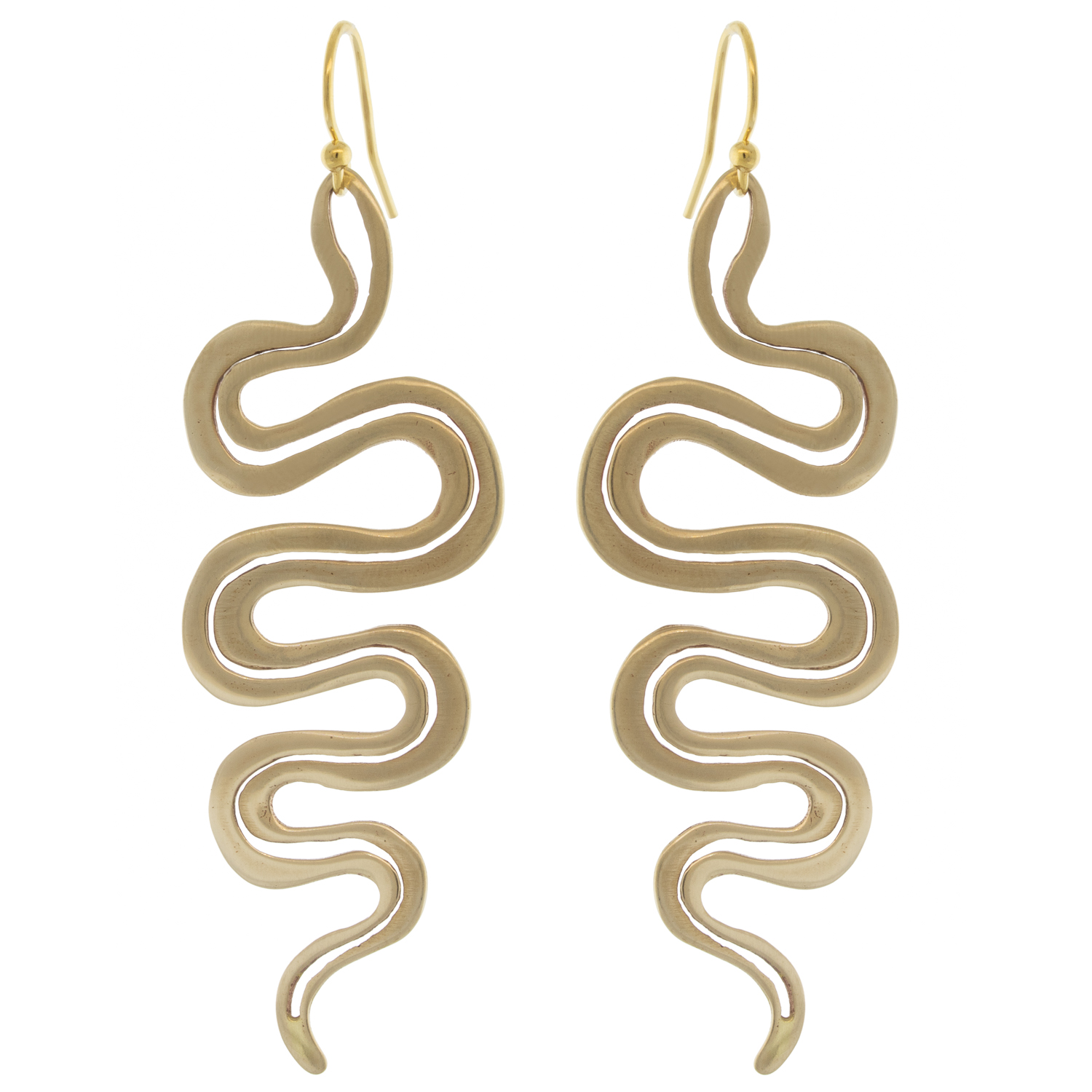 Sleek and modern, these elegant gold-hued serpent earrings make a statement with minimal effort.