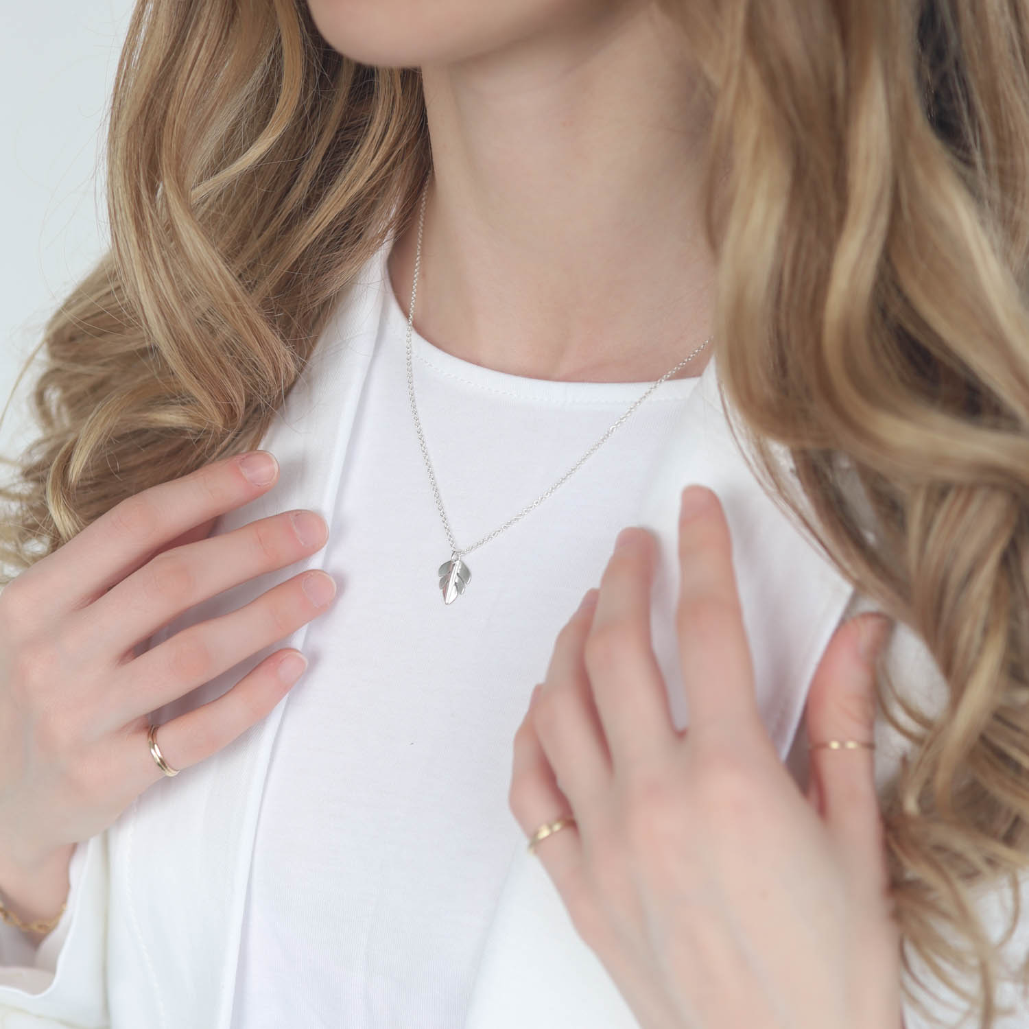 Sleek and modern, this tropical silver leaf pendant makes a statement with minimal effort.