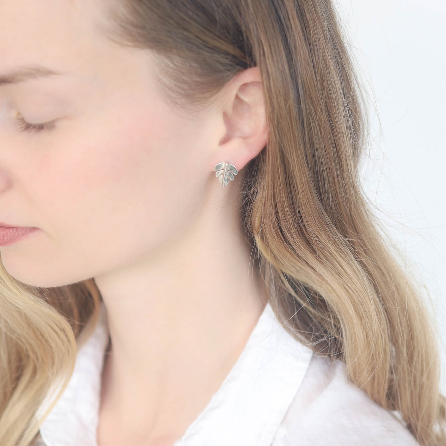 Elegant and modern, these tropical silver leaf studs make a statement with minimal effort.