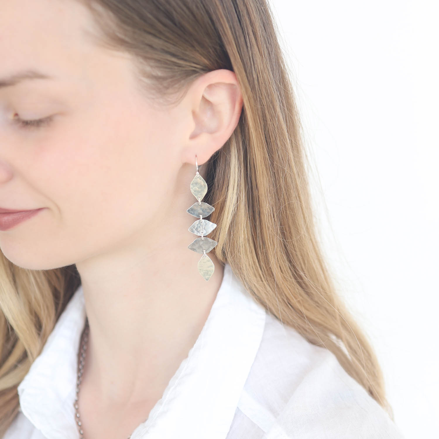 Edgy and modern, these chic silver earrings make a statement with minimal effort.