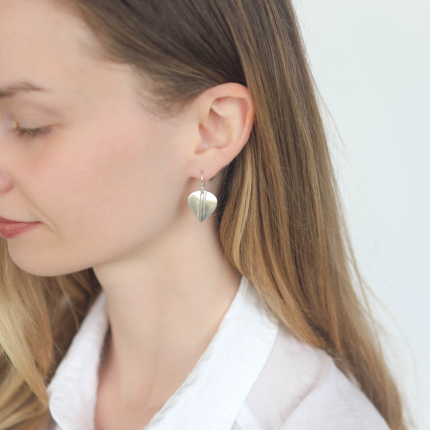 Sleek and modern, these elegant silver leaf earrings make a statement with minimal effort.