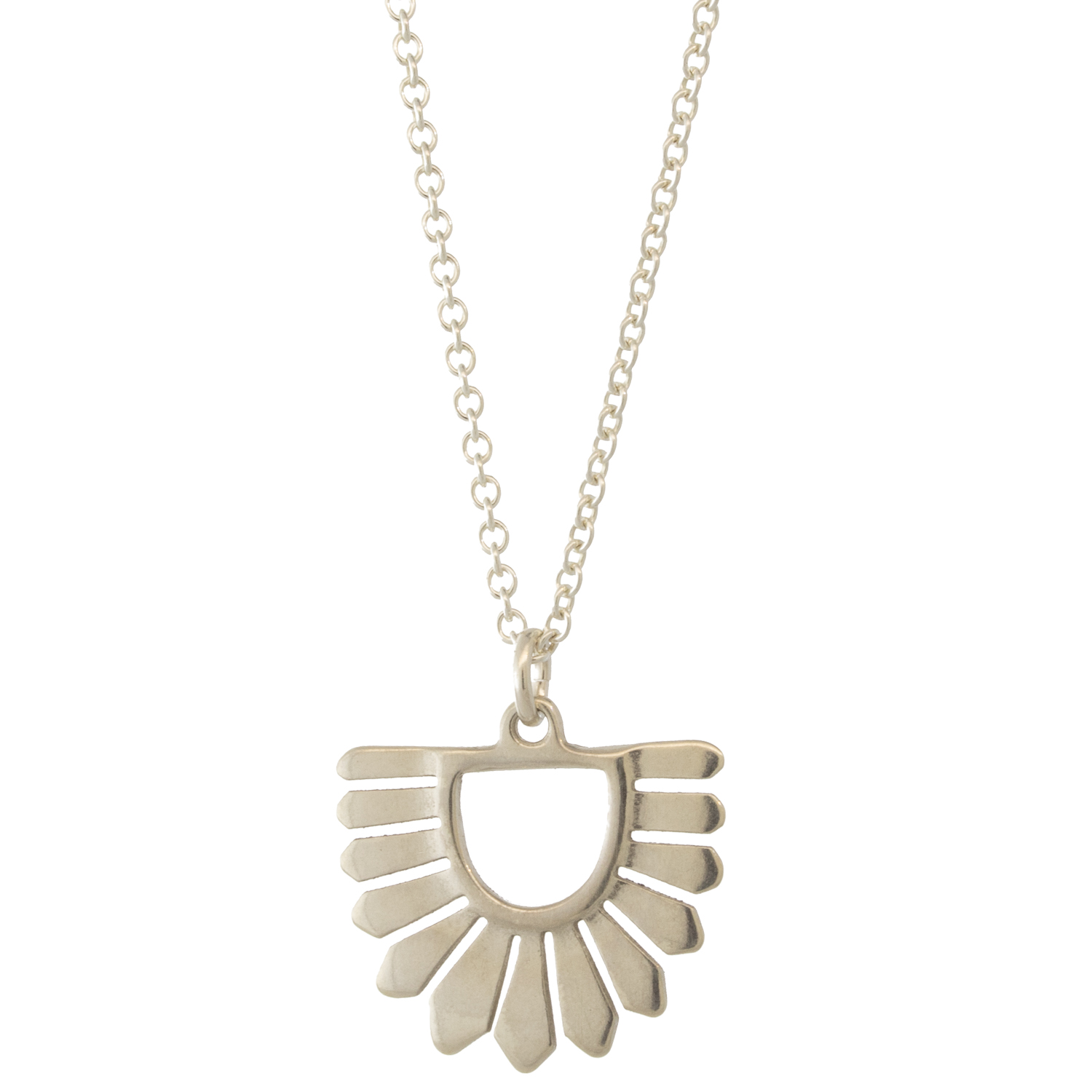 Edgy and modern, this ornate silver pendant makes a statement with minimal effort.