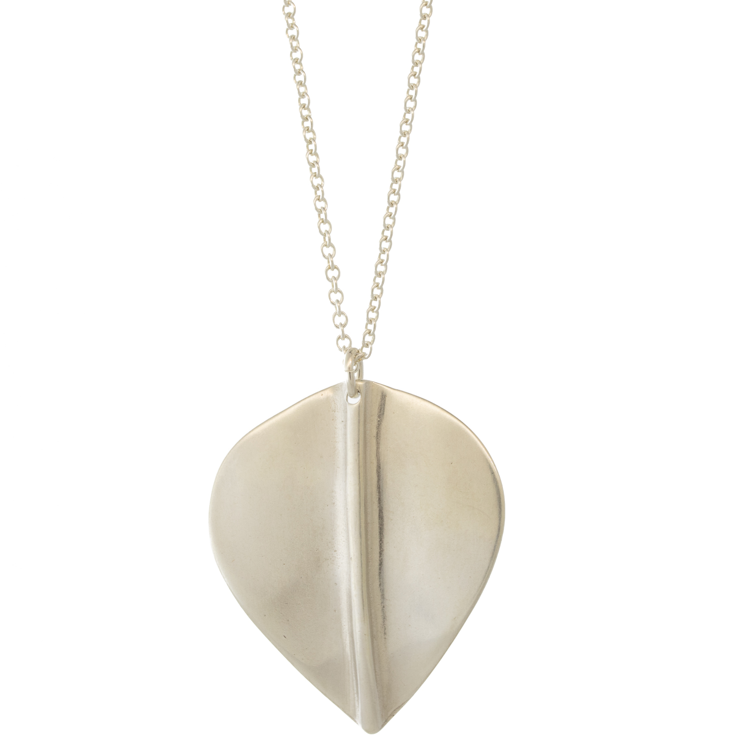 Sleek and modern, this elegant silver leaf pendant makes a statement with minimal effort.
