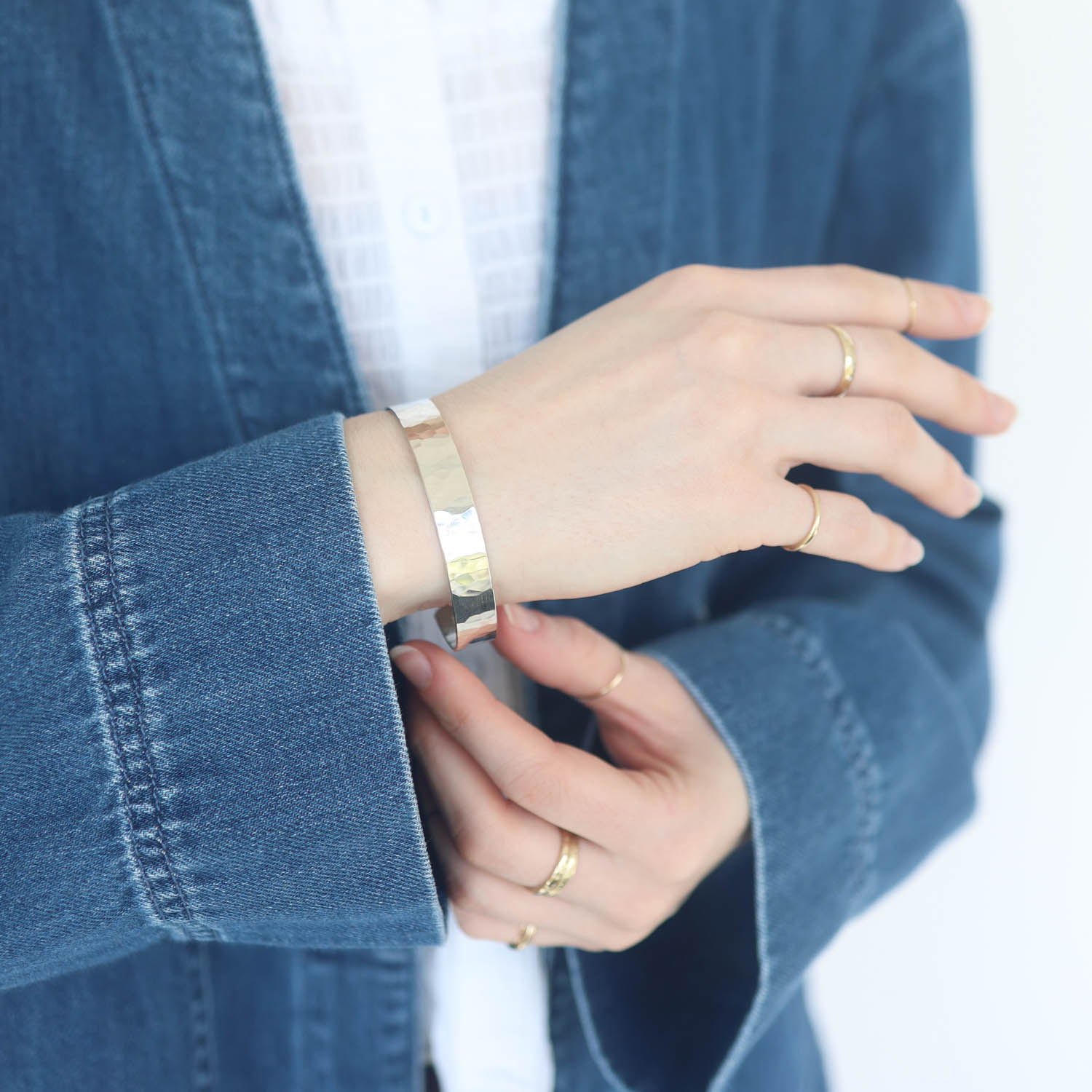 With a classic shape and lightly hammered texture, this cuff is the epitome of an everyday-wear. It can be dressed up or down and look chic either way.