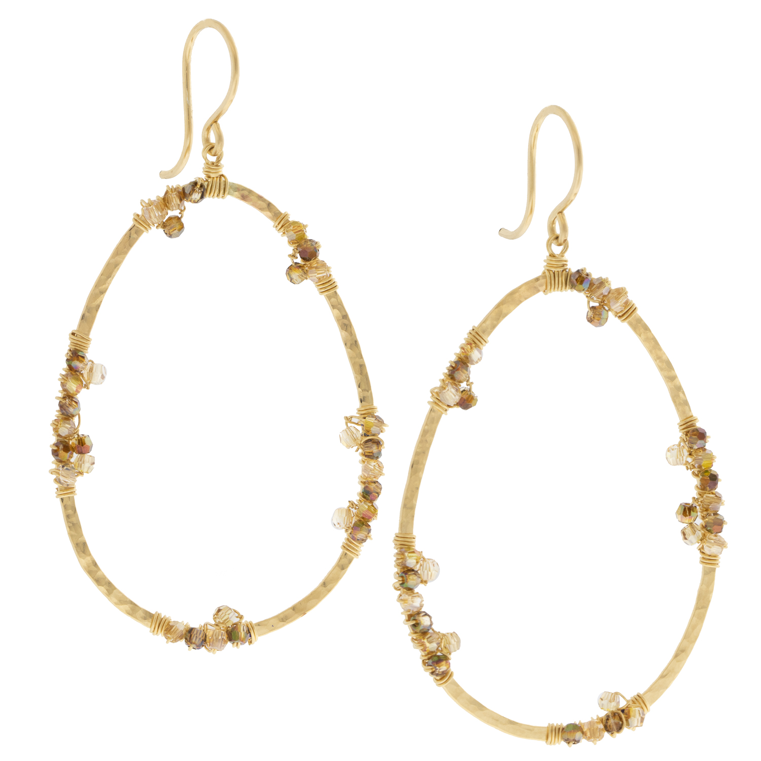 Hives of bronze crystals twinkle against the vibrant gold of these earrings.
