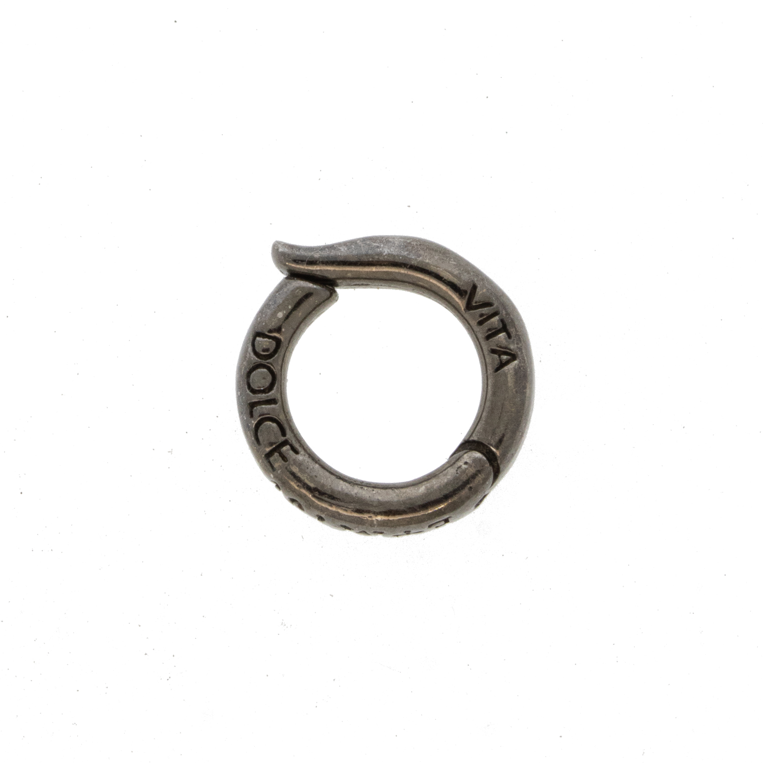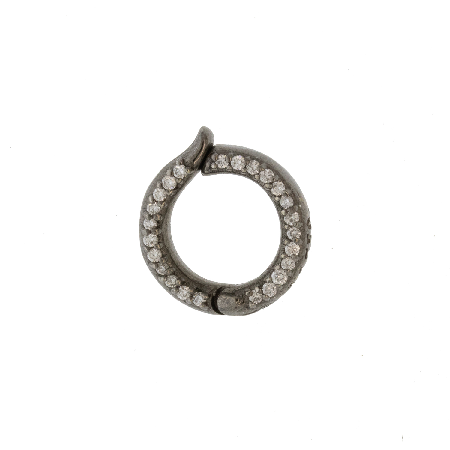 This tiny black rhodium plated charm holder has a myriad of uses in building a charm story that’s all your own. We suggest using it to clasp one of Erica’s open-ended chains and bracelets.