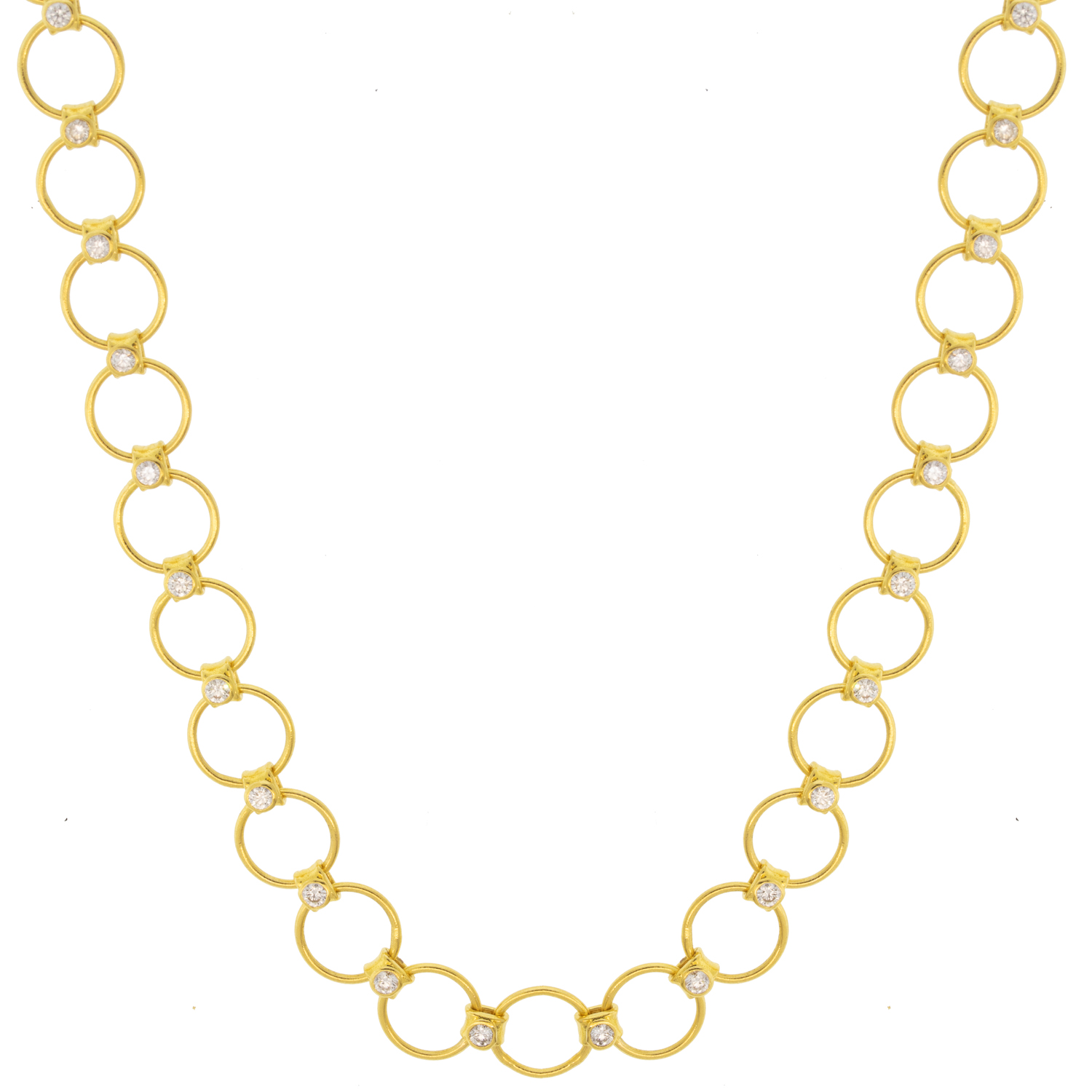 Gurhan:Necklace,22k YG,Gold round link chain,brilliant cut white diamond links,1.344ctw,16.25",18k clasp quantity