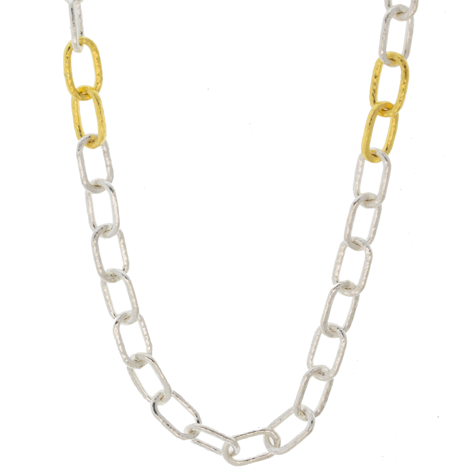 The oval links of this necklace are given a touch of understated wow with the addition of gold links. We love the versatility that mixed metal jewelry offers, and think this chain will be a fast favorite.