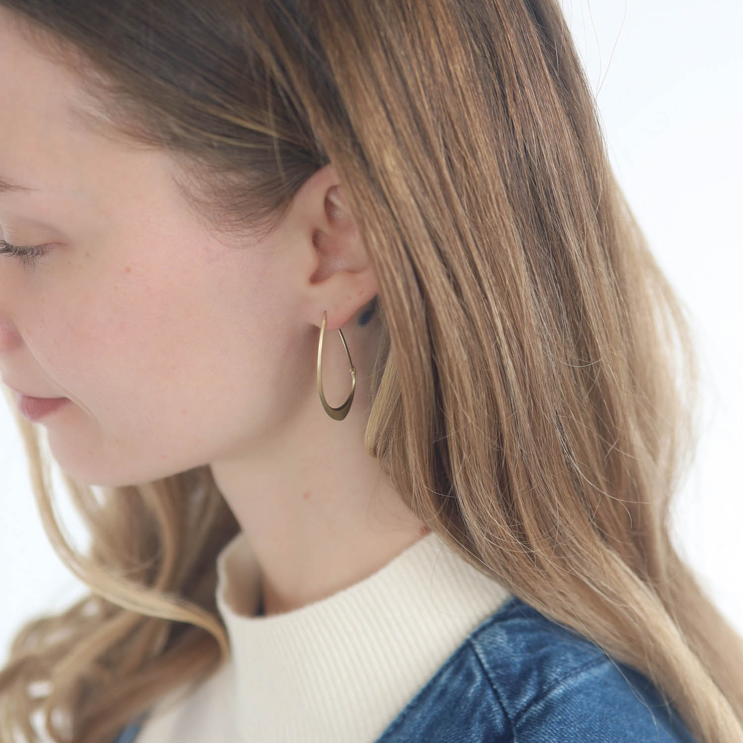 Hannah Blount’s take on the classic hoop are these sleek, structural gold hoops. Ideal for everyday wear, their presence is substantial while remaining minimal in aesthetic.