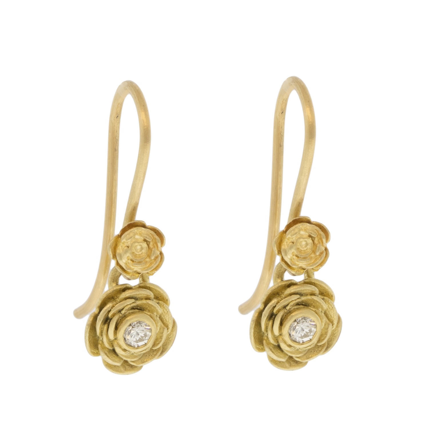These sweet little gold rose earrings are perfectly subtle and a touch whimsical. This floral design captures the soft delicateness of the flower.