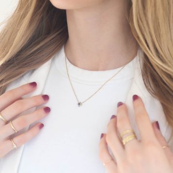 A gorgeous pop of blue sapphire perfectly complements your look, day to night. Surrounded by a frame of recycled gold, this beauty is perfect parts stunning and eco-friendly.