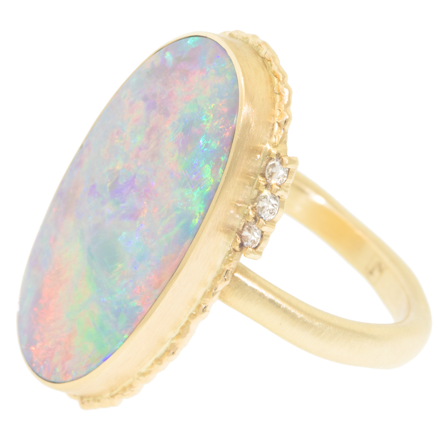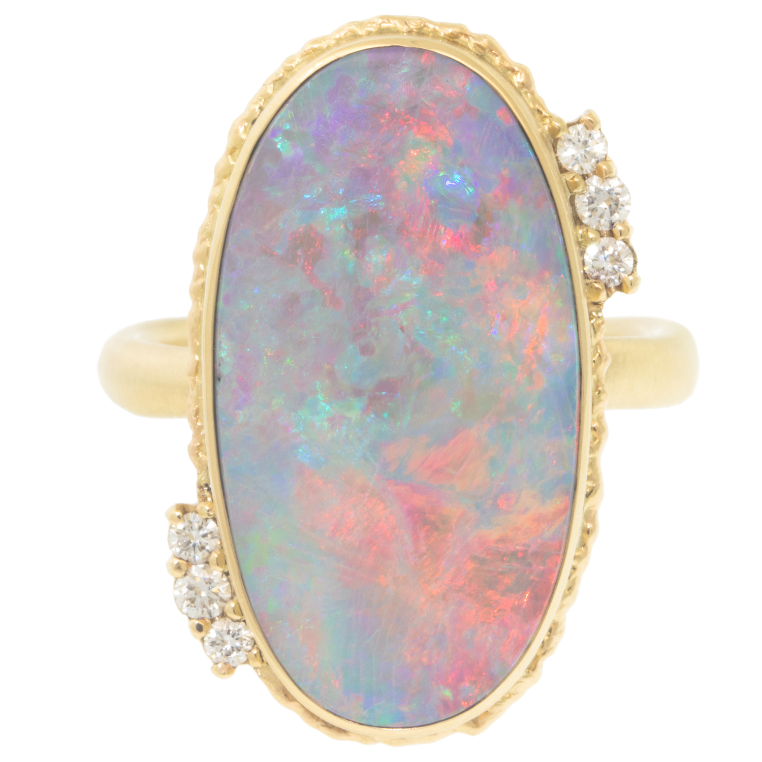 Australian opal Ring with Six Satellite Diamonds