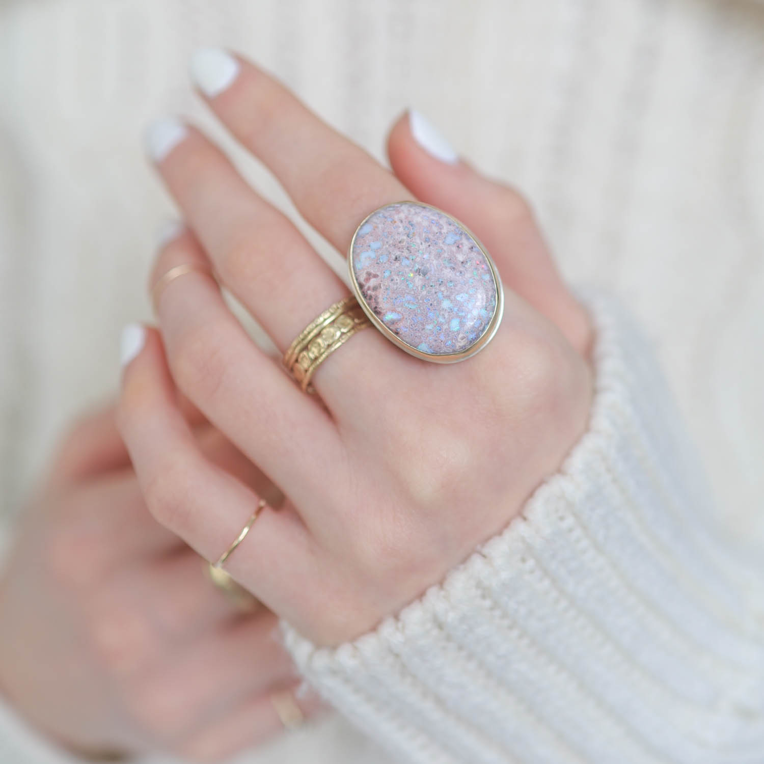 Large Vertical Oval Fire Opal Ring