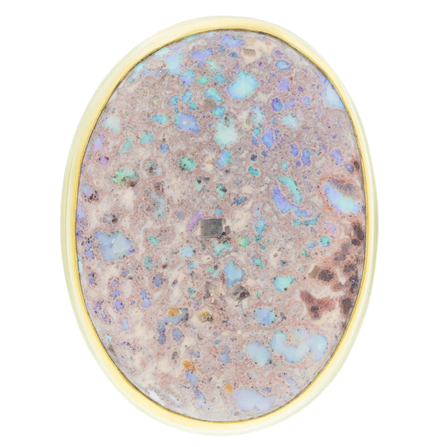 - 14K gold bezel set Mexican fire opal
