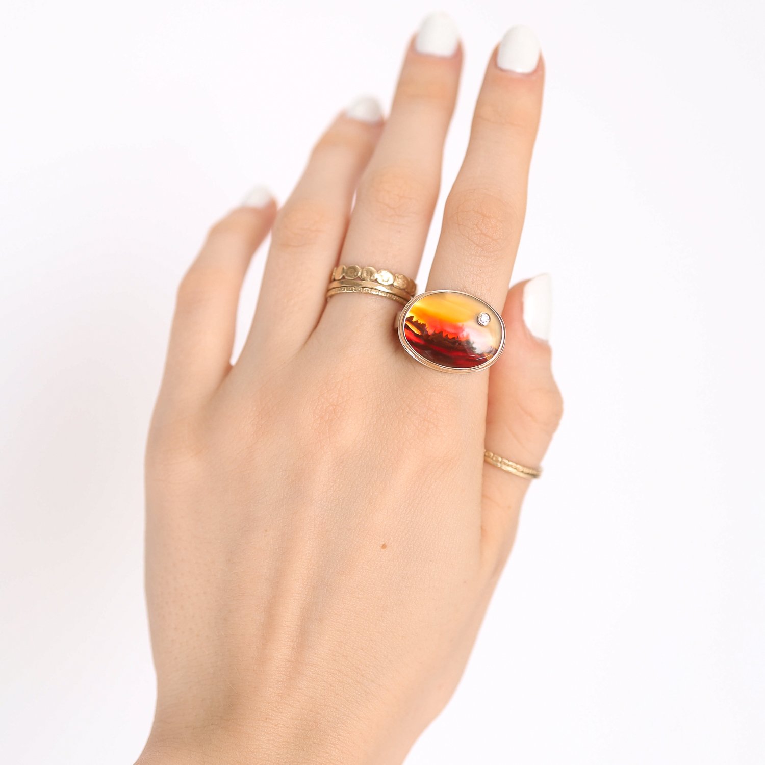 Landscape Agate Ring with Diamond
