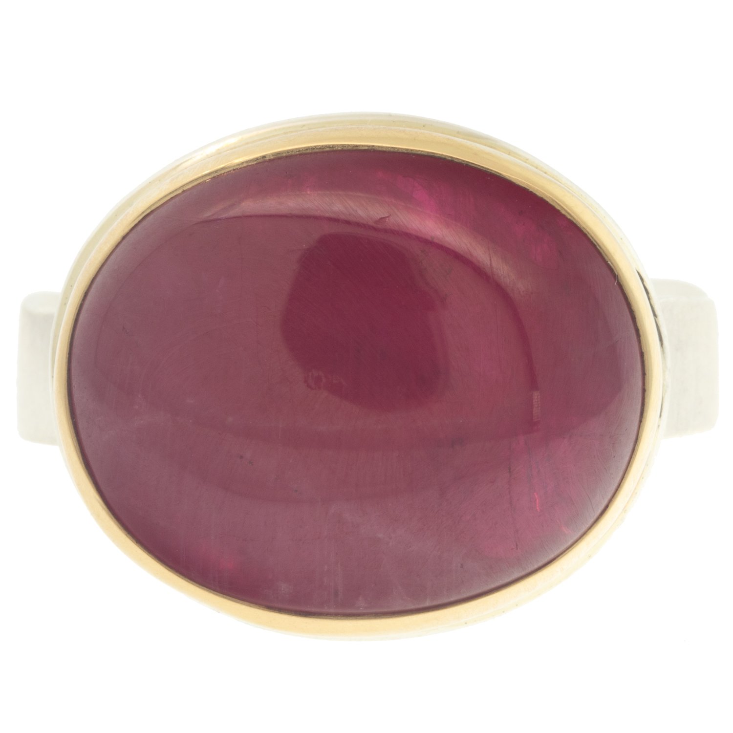 - 14K yellow gold bezel set African ruby