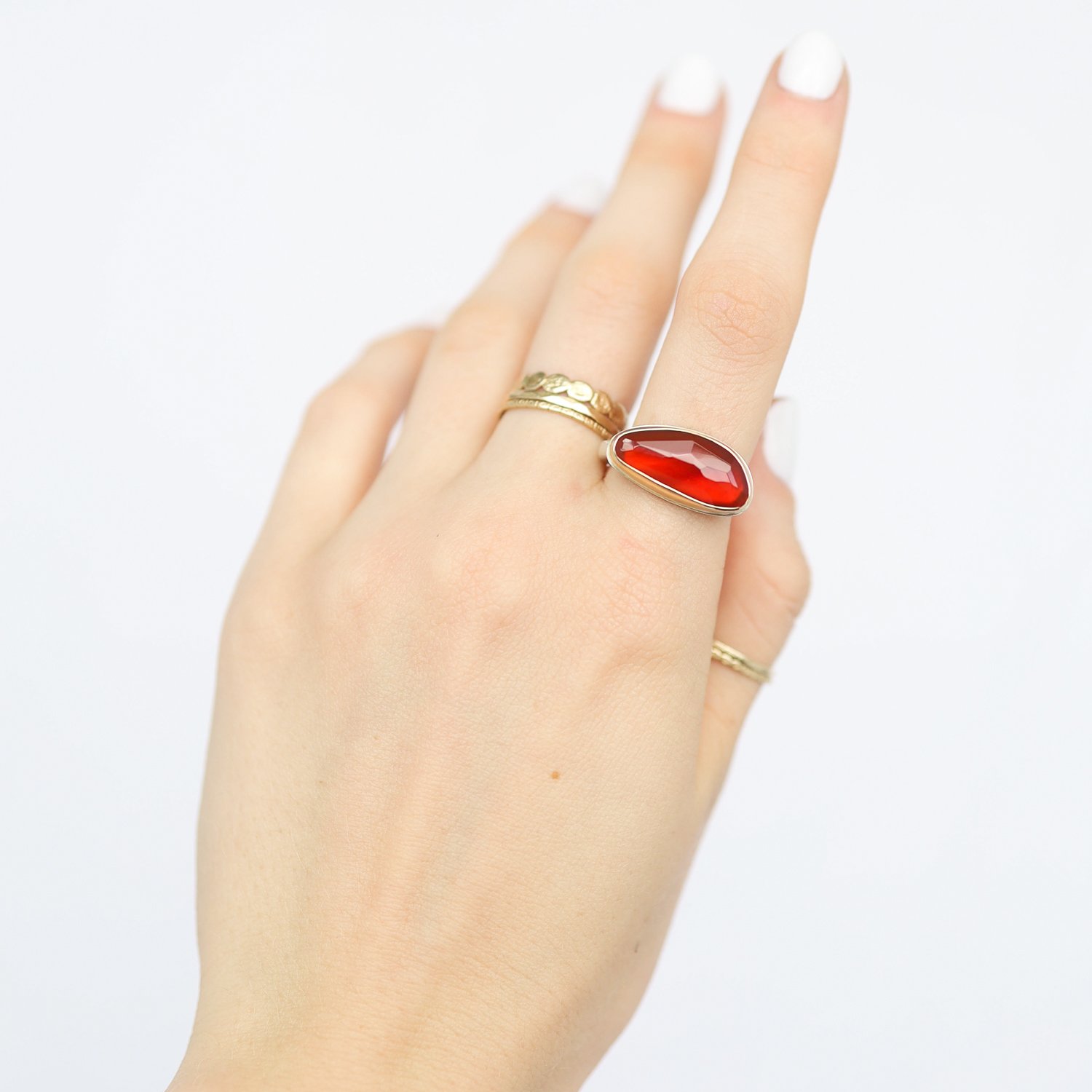 Carnelian, with its warm orange-y red hues, is known as a stone of motivation, endurance, leadership, and courage.