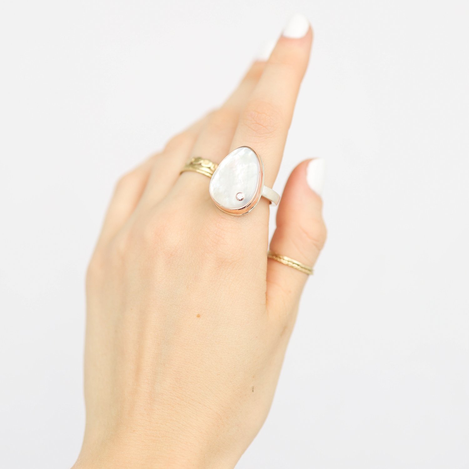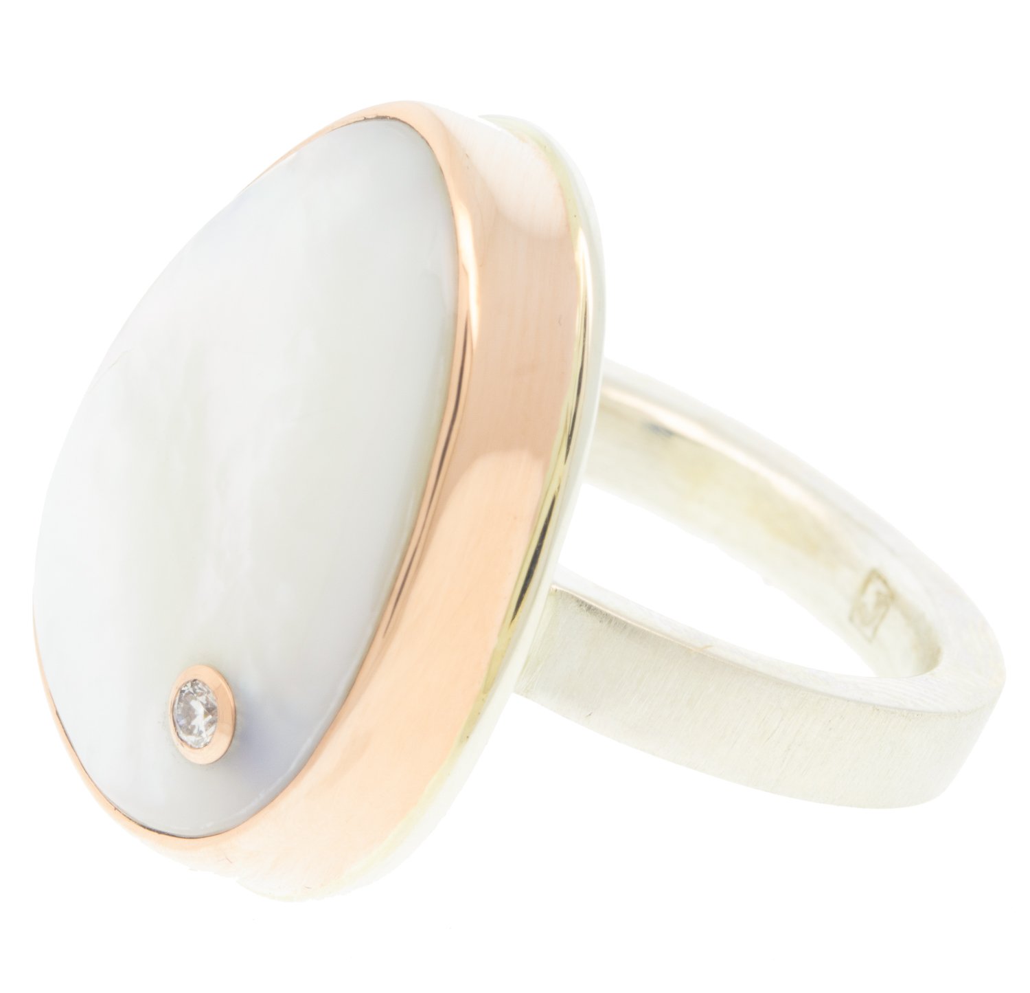 - 14K rose gold bezel set mother of pearl