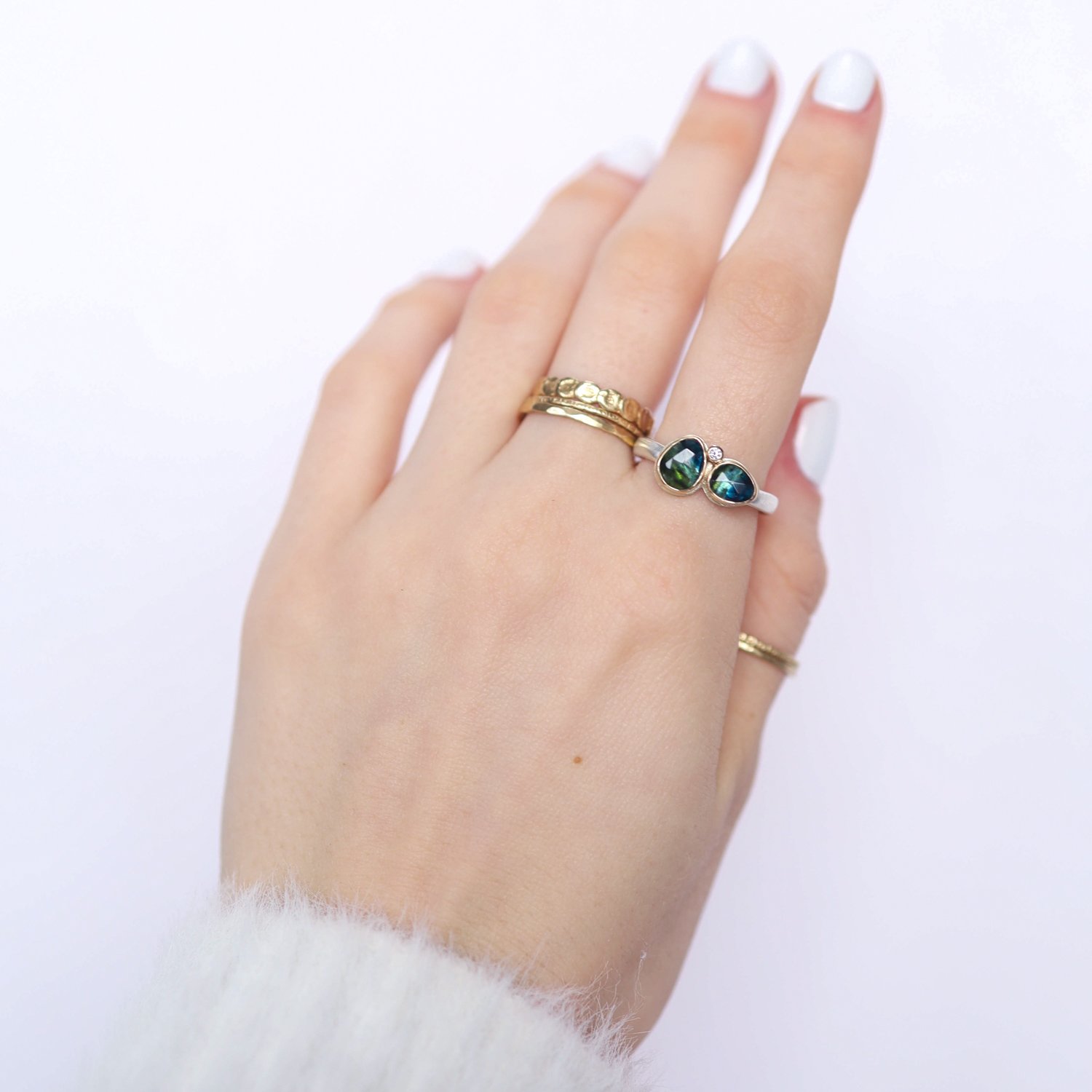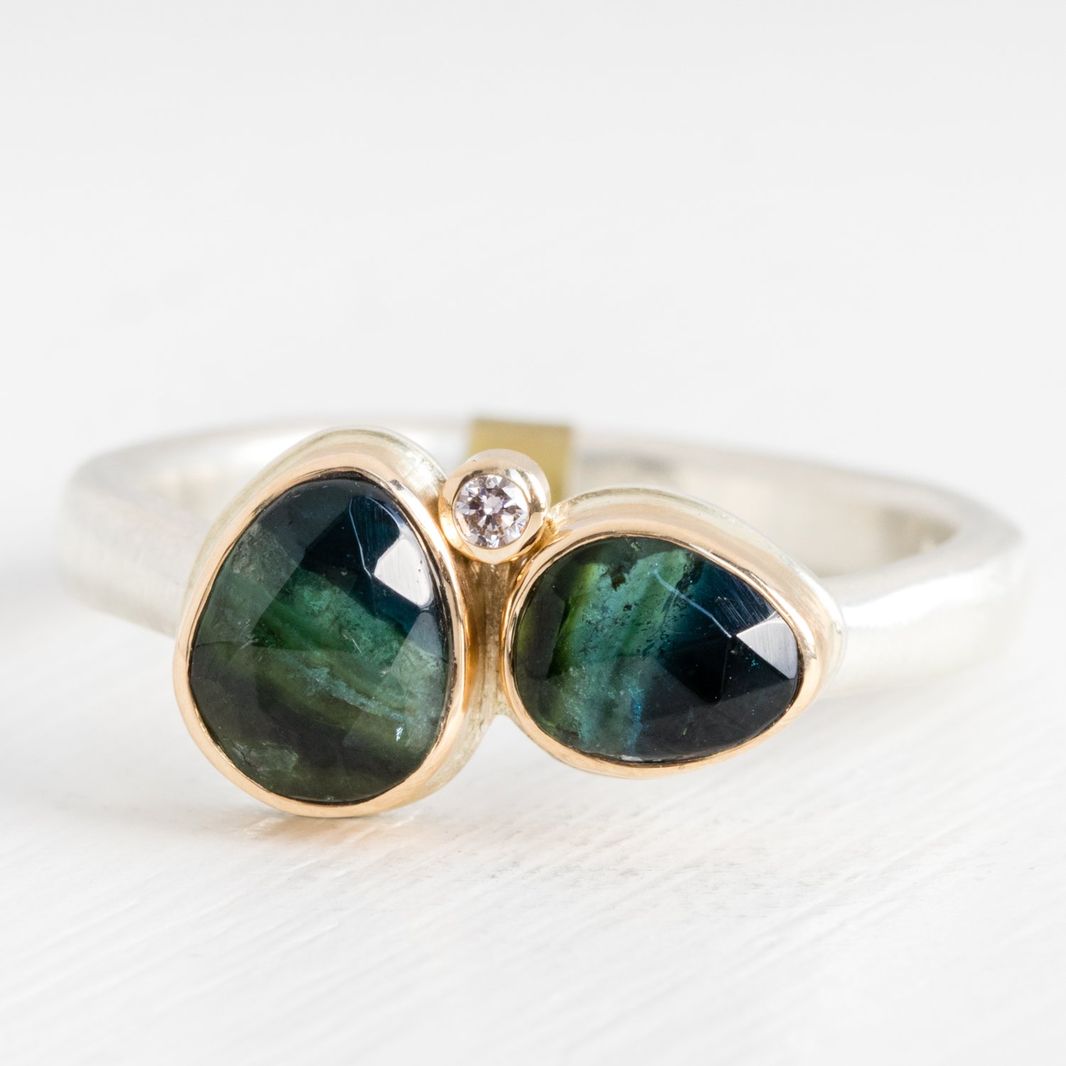 Trunk Show: Double Blue Green Tourmaline Ring with Satellite Diamond