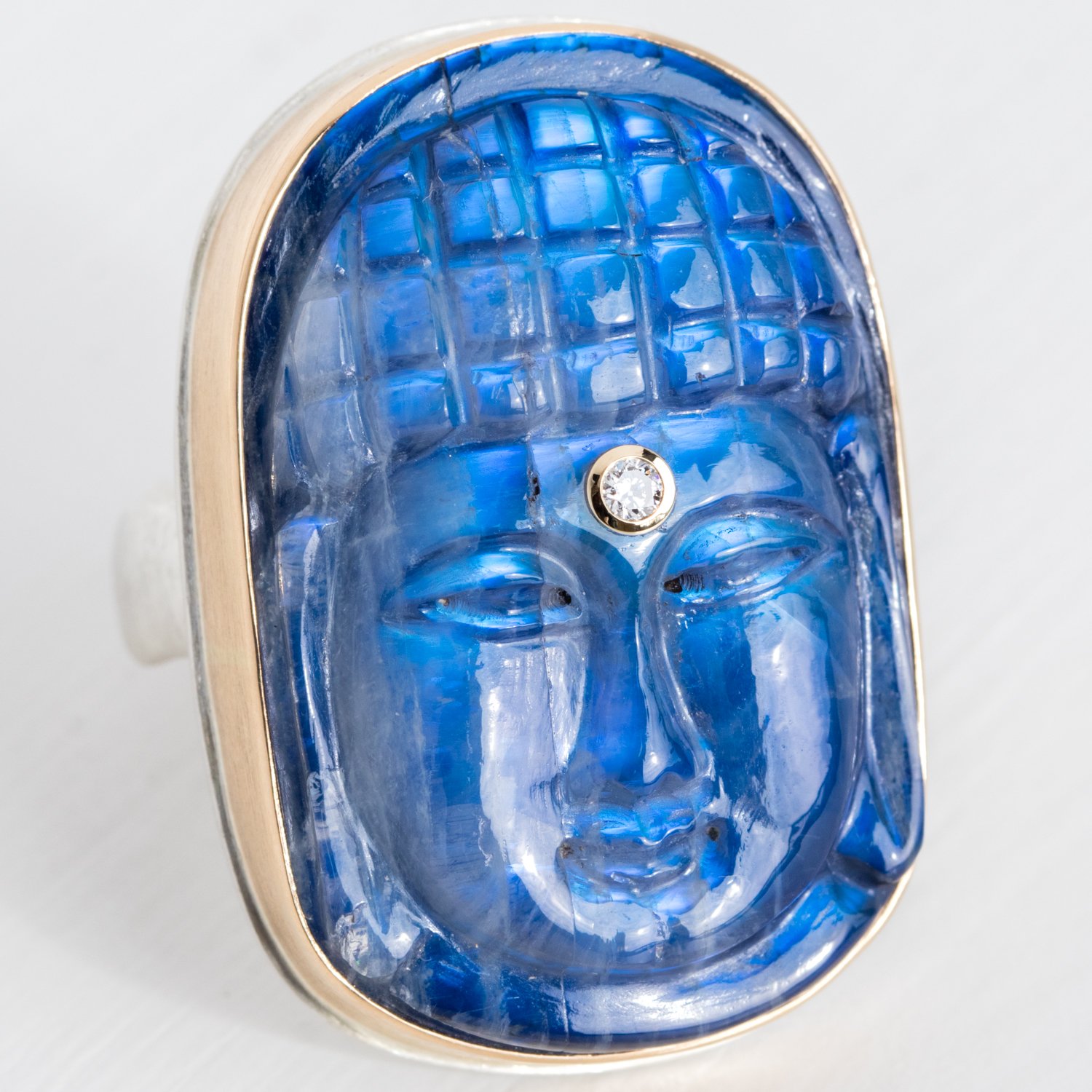 Trunk Show: Rainbow Moonstone Buddha Ring with Diamond