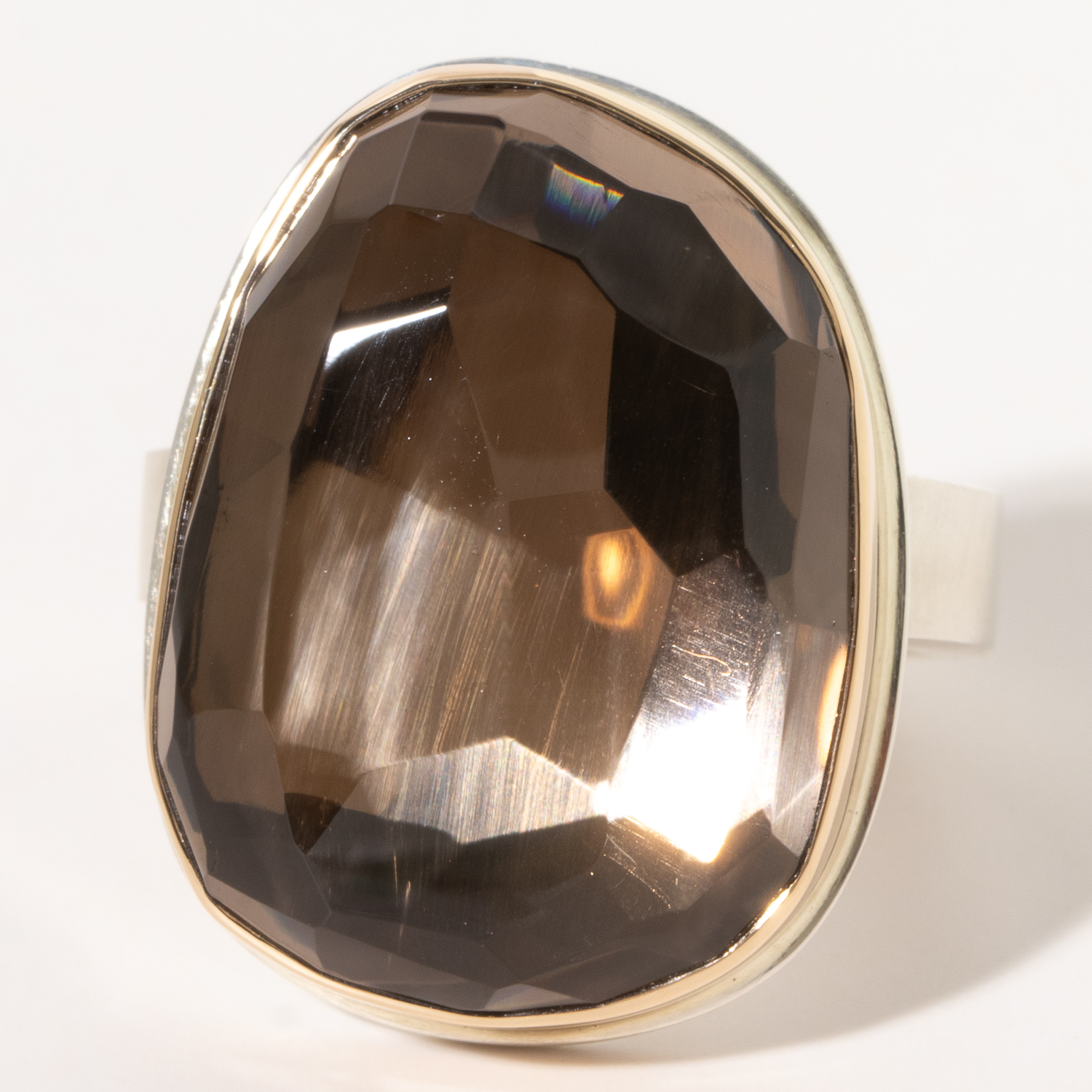 - 14K gold bezel set smoky quartz