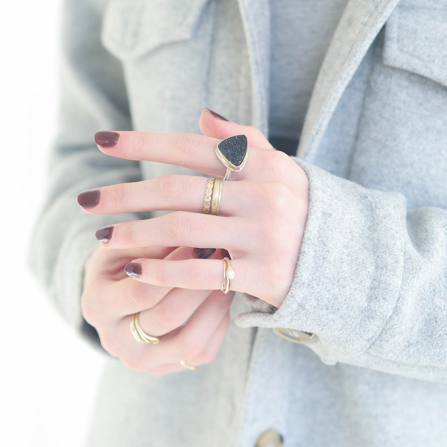 Black drusy is thought to be a protective stone which brings its wearer a sense of peace, much like its appearance. Light dances across the surface of this drusy stone, shimmering and sparkling in all the right ways.