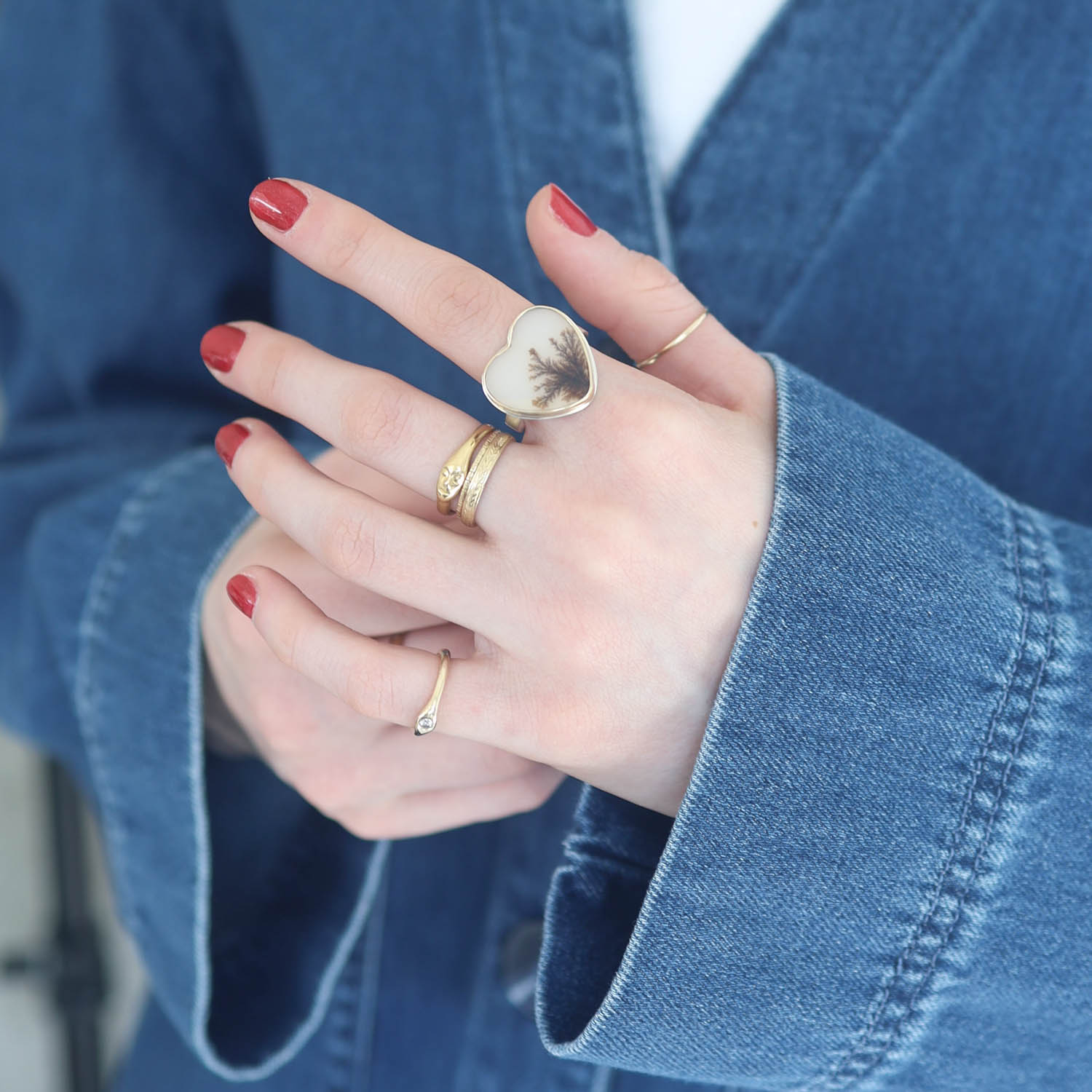 Heart Dendritic Agate Ring