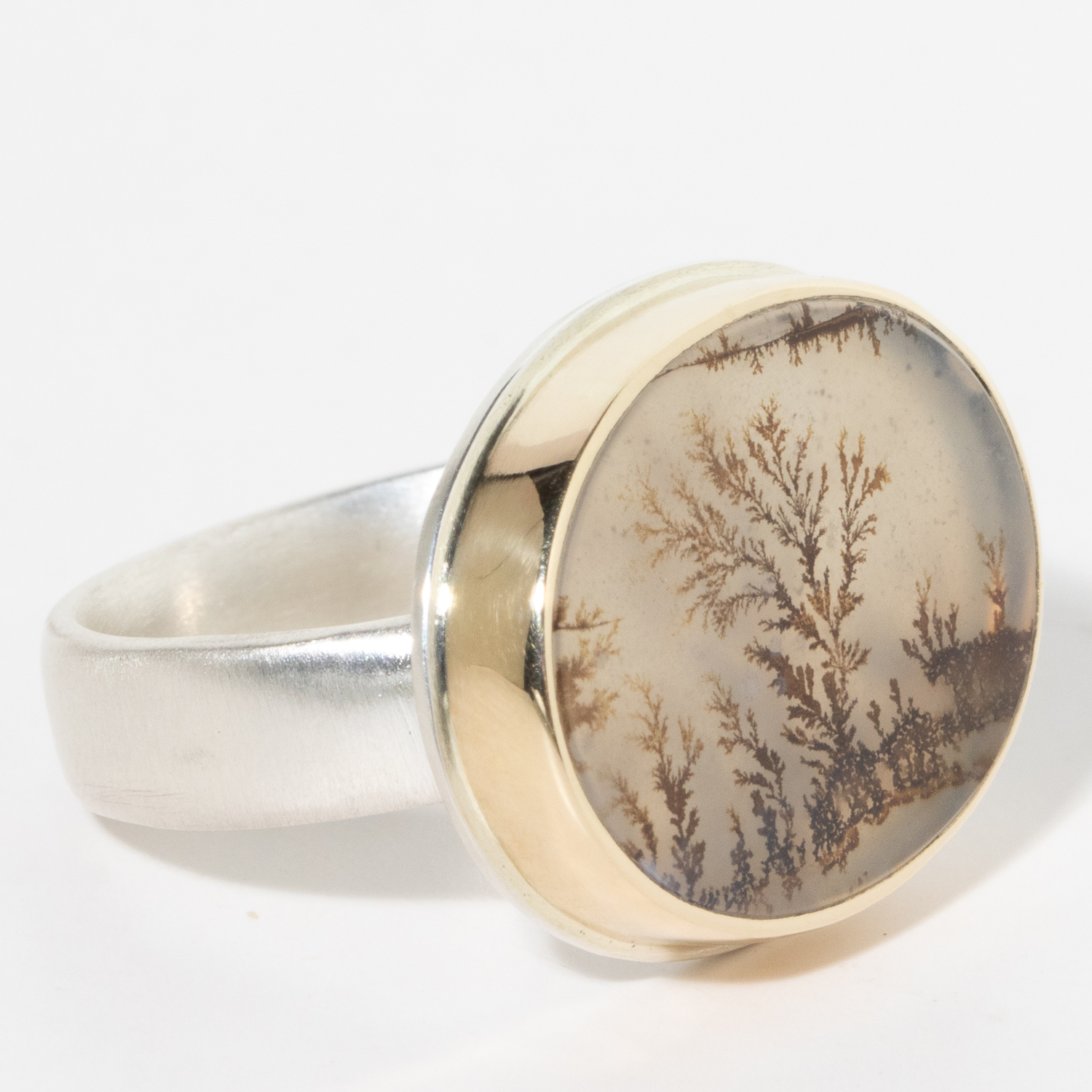 • 14K gold bezel set dendritic agate