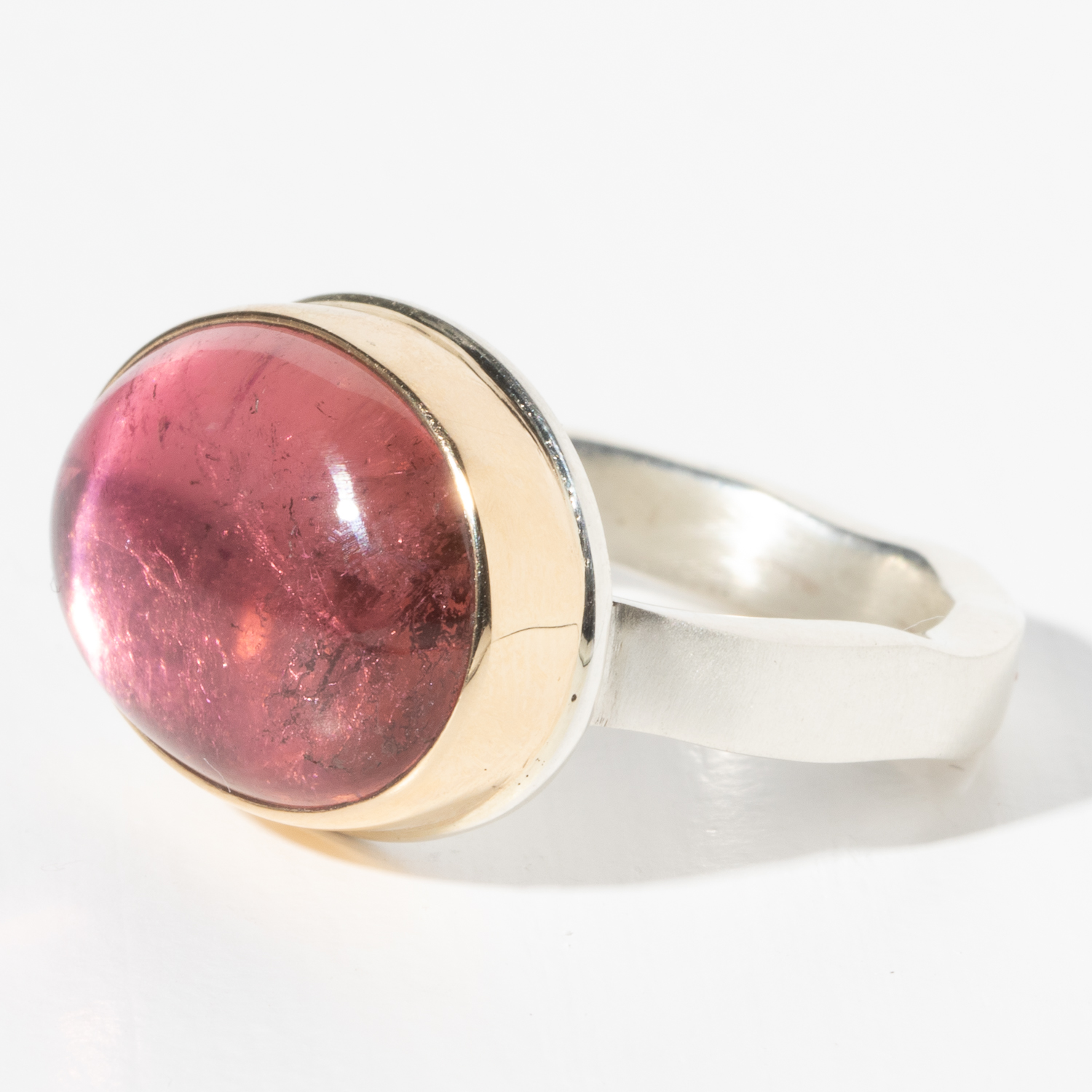 - 14K gold bezel set pink tourmaline