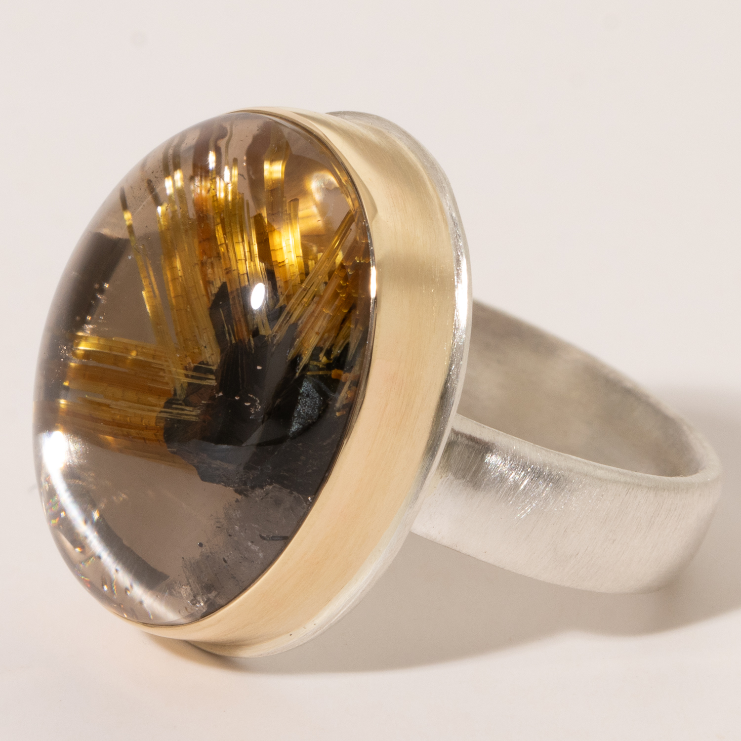 Rutilated quartz is a variety of quartz which contains naturally occurring strands of rutile. It is believed to activate wisdom, provide energy, and strengthen intuition.