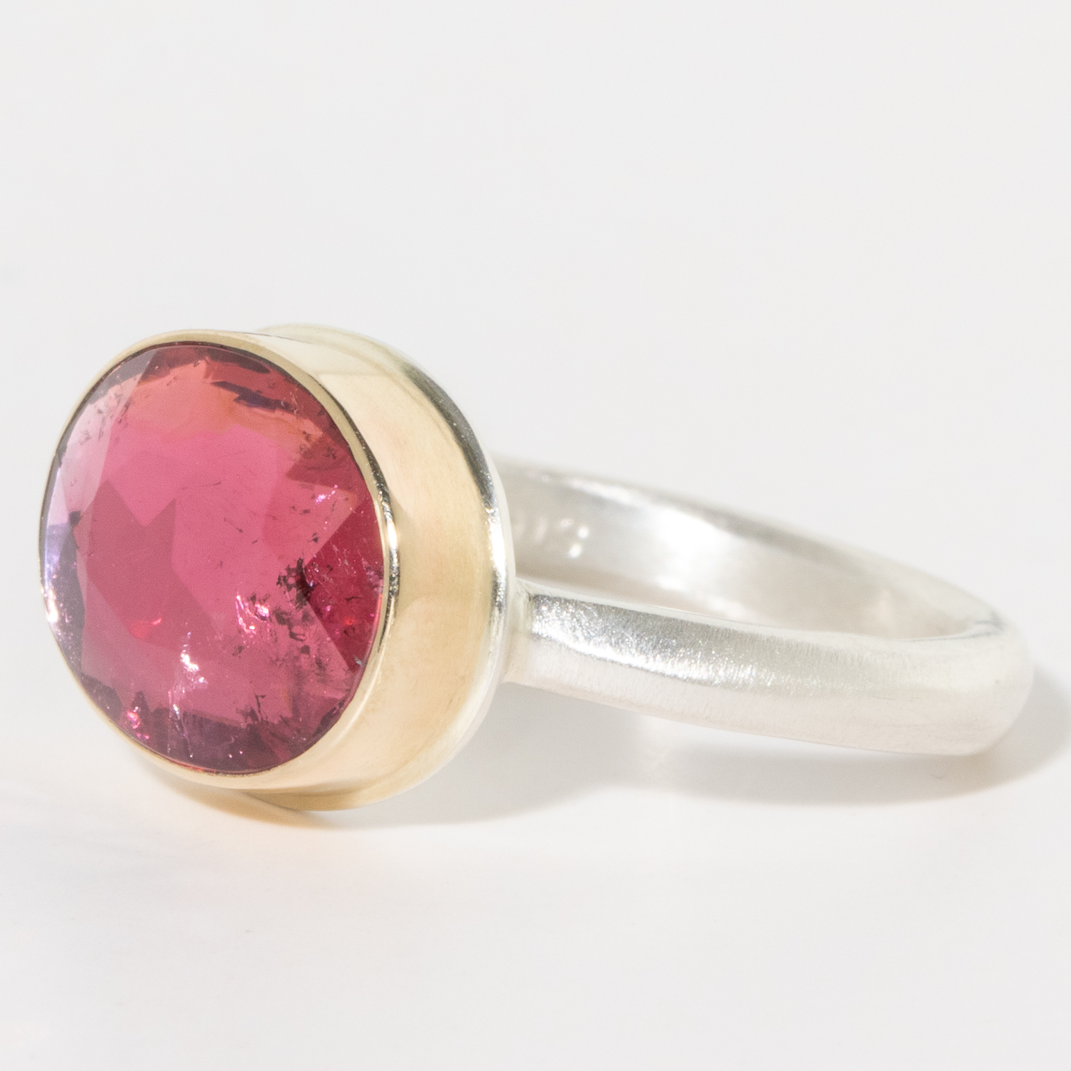 - 14K gold bezel set rubellite tourmaline