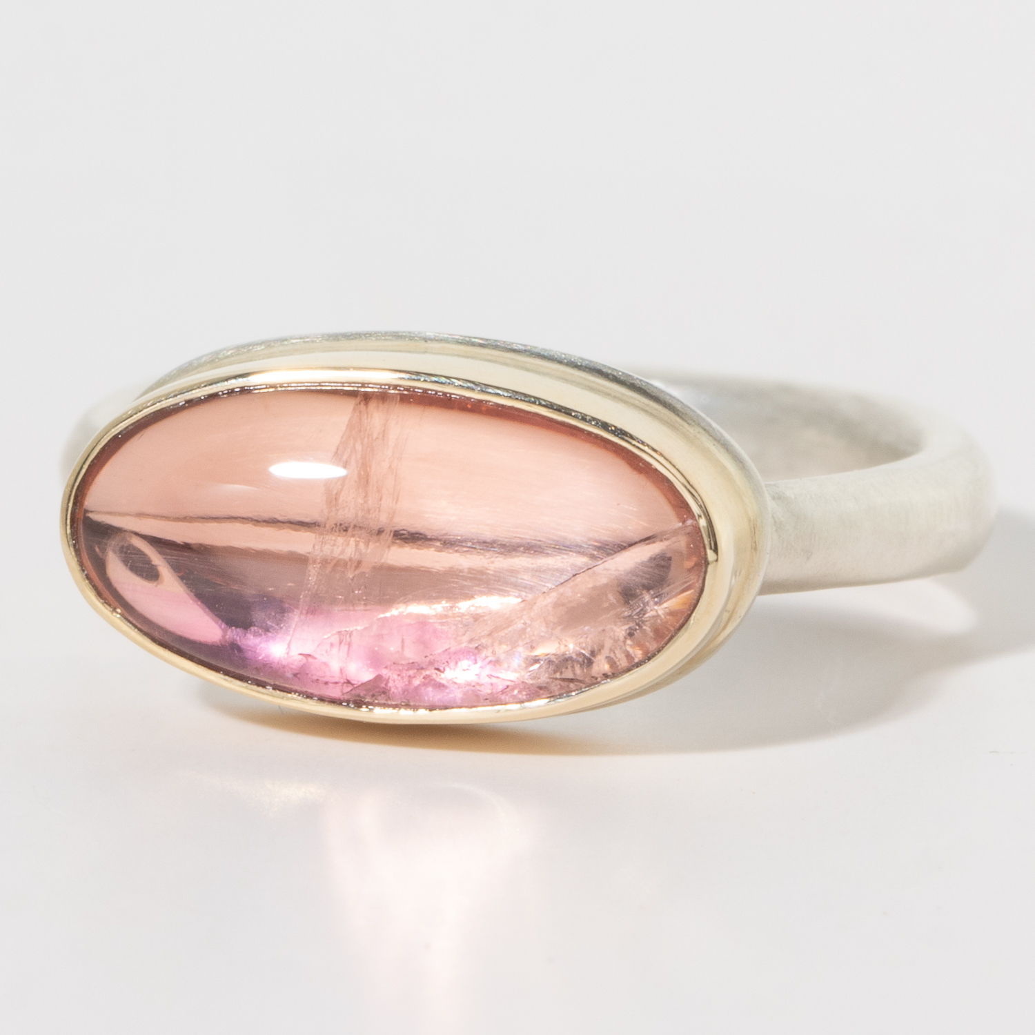 - 14K gold bezel set pink tourmaline