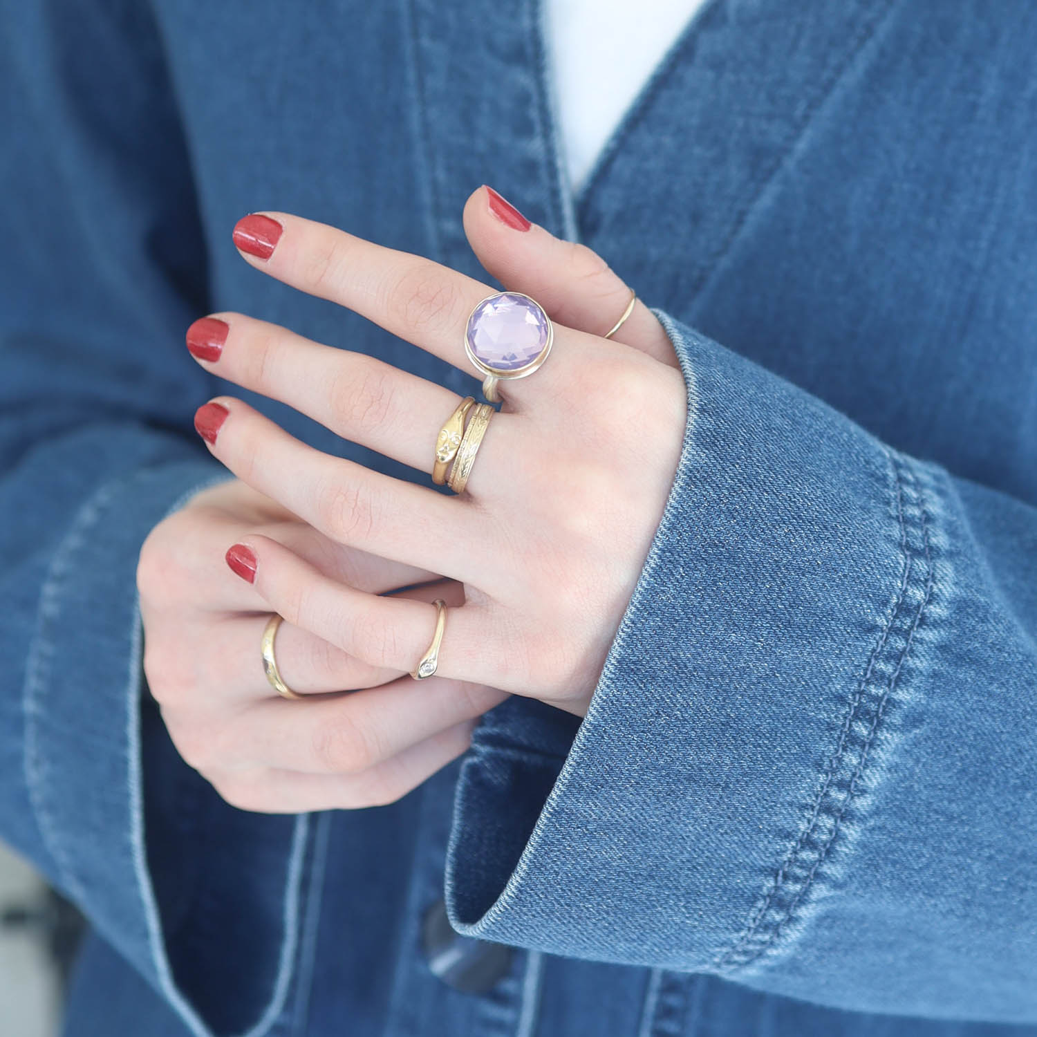 Lavender amethyst’s clear, light-filled surface and magical pale pink-purple color is thought to inspire wisdom, ease stress, still the mind, and invigorate dormant energy.