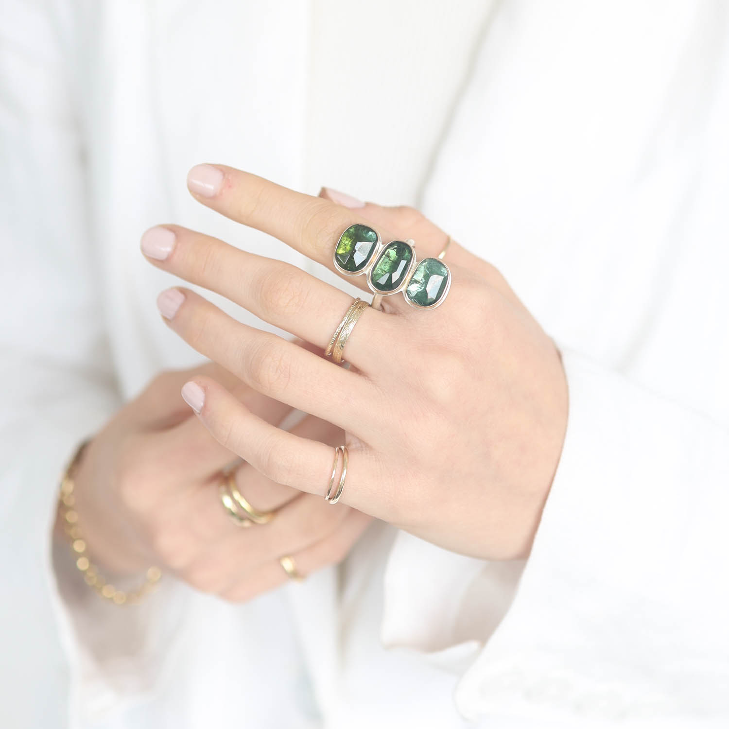 Green tourmaline possesses an earthy green complexion and is said to be a stone of the heart; believed to bring harmony to its wearer and inspire compassion towards oneself.