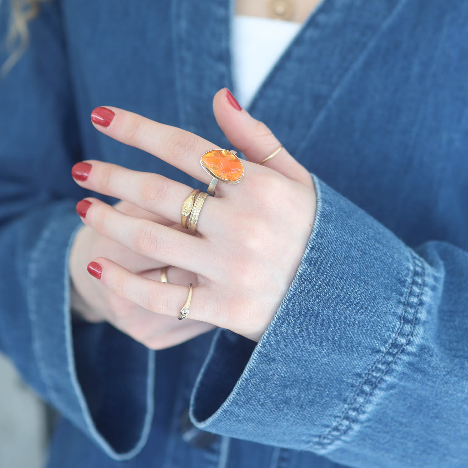 Orange Mexican Fire Opal Ring