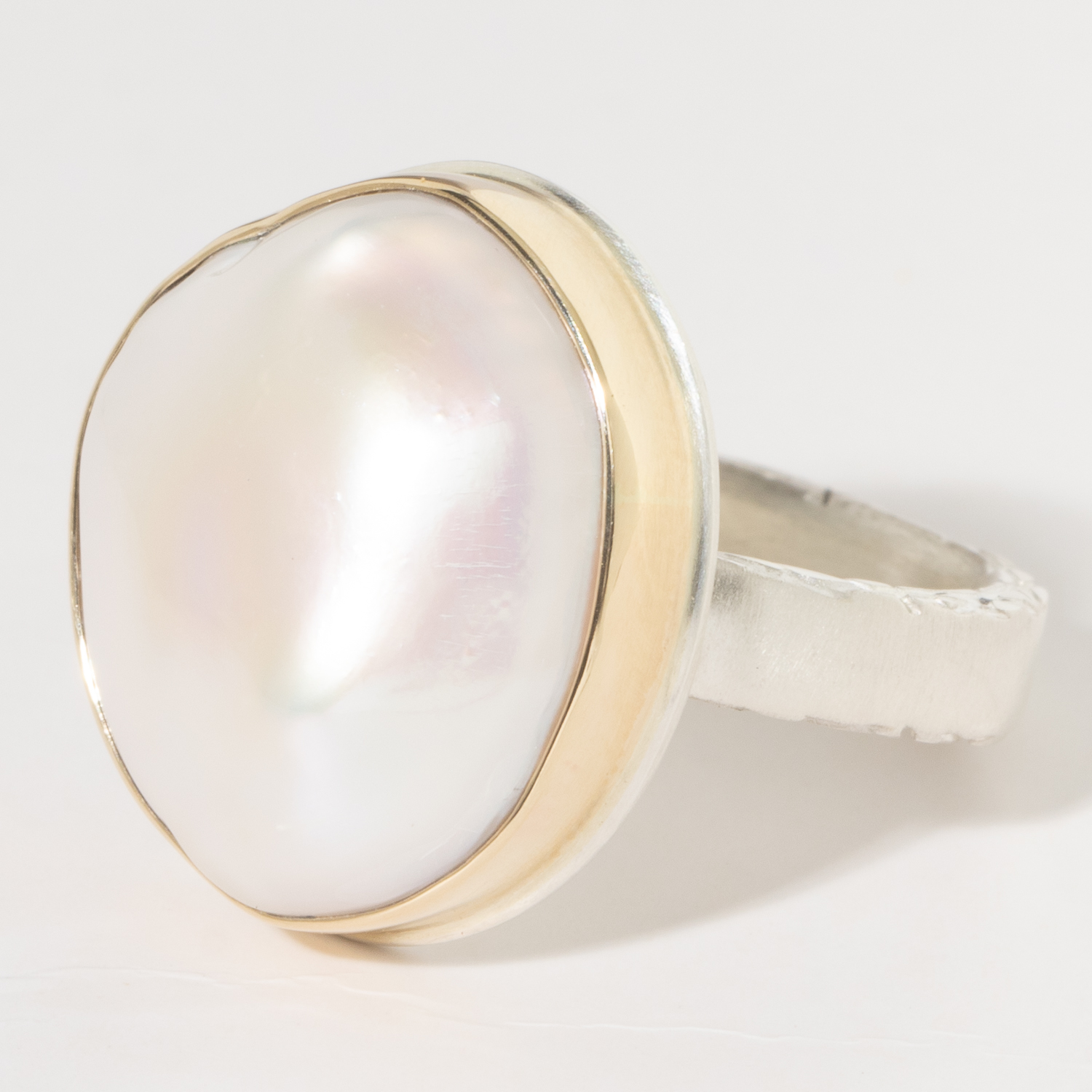 - 14K gold bezel set white cultured pearl