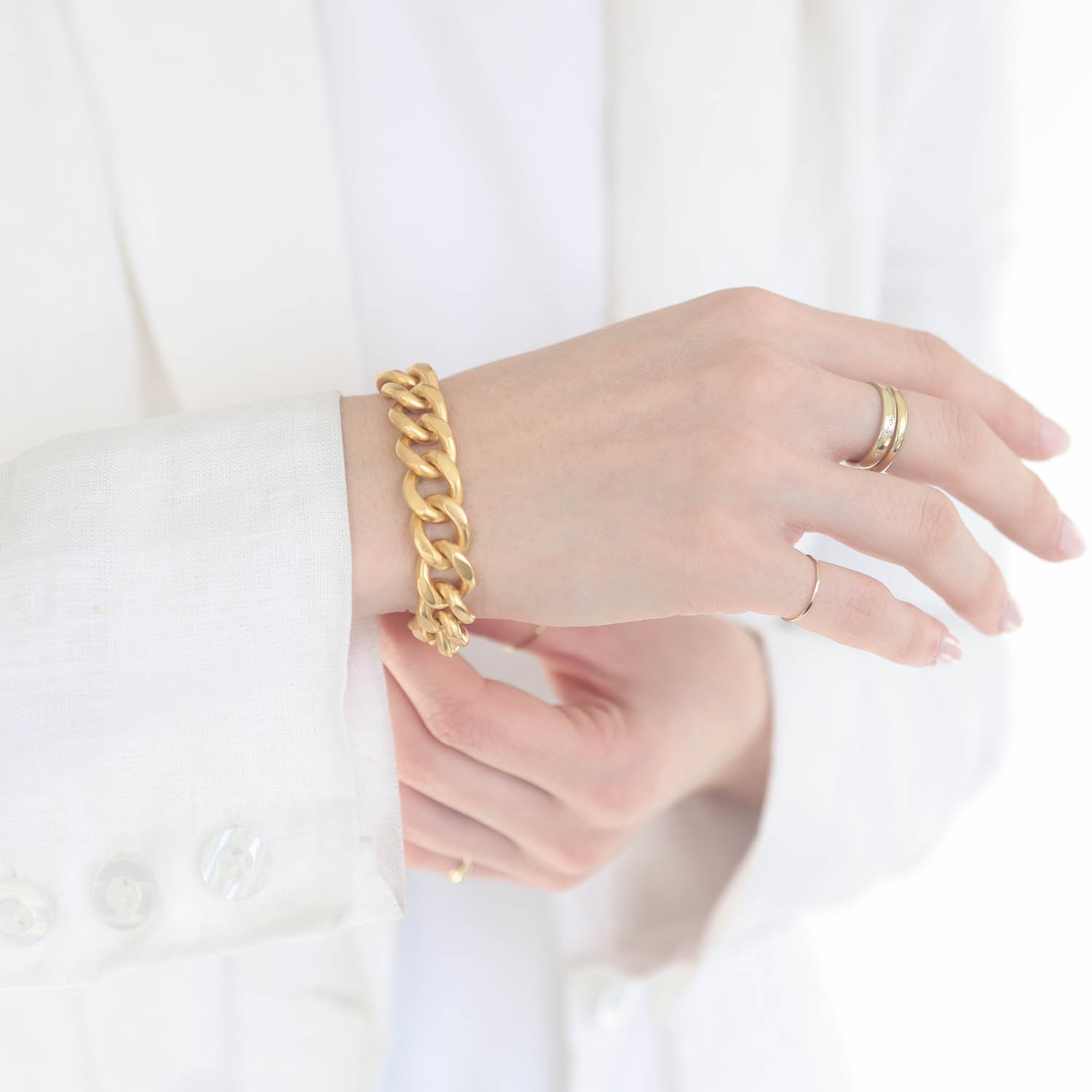 With a vibrant gold finish, this linked bracelet stands out on its own but also layers up with other bracelets effortlessly.