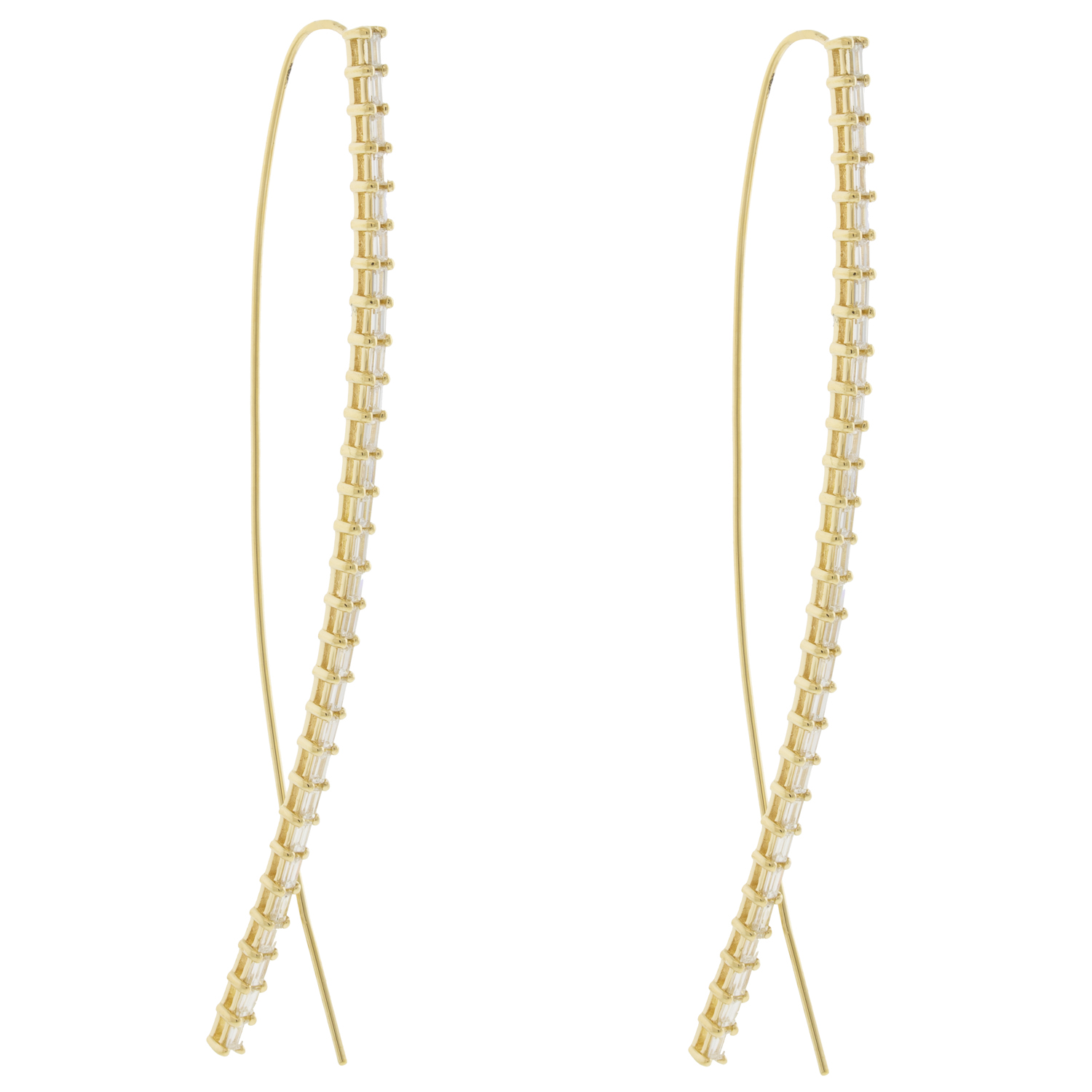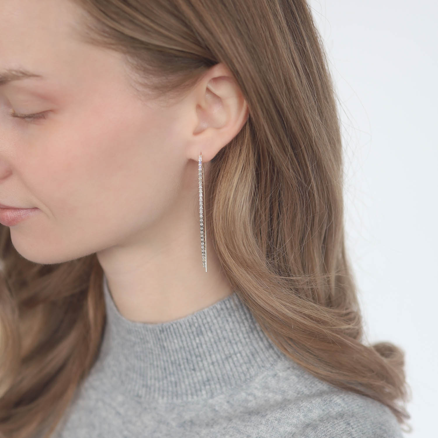 A modern take on a timeless shape, these thin, diamond-lined upside down hoops are effortlessly elegant.