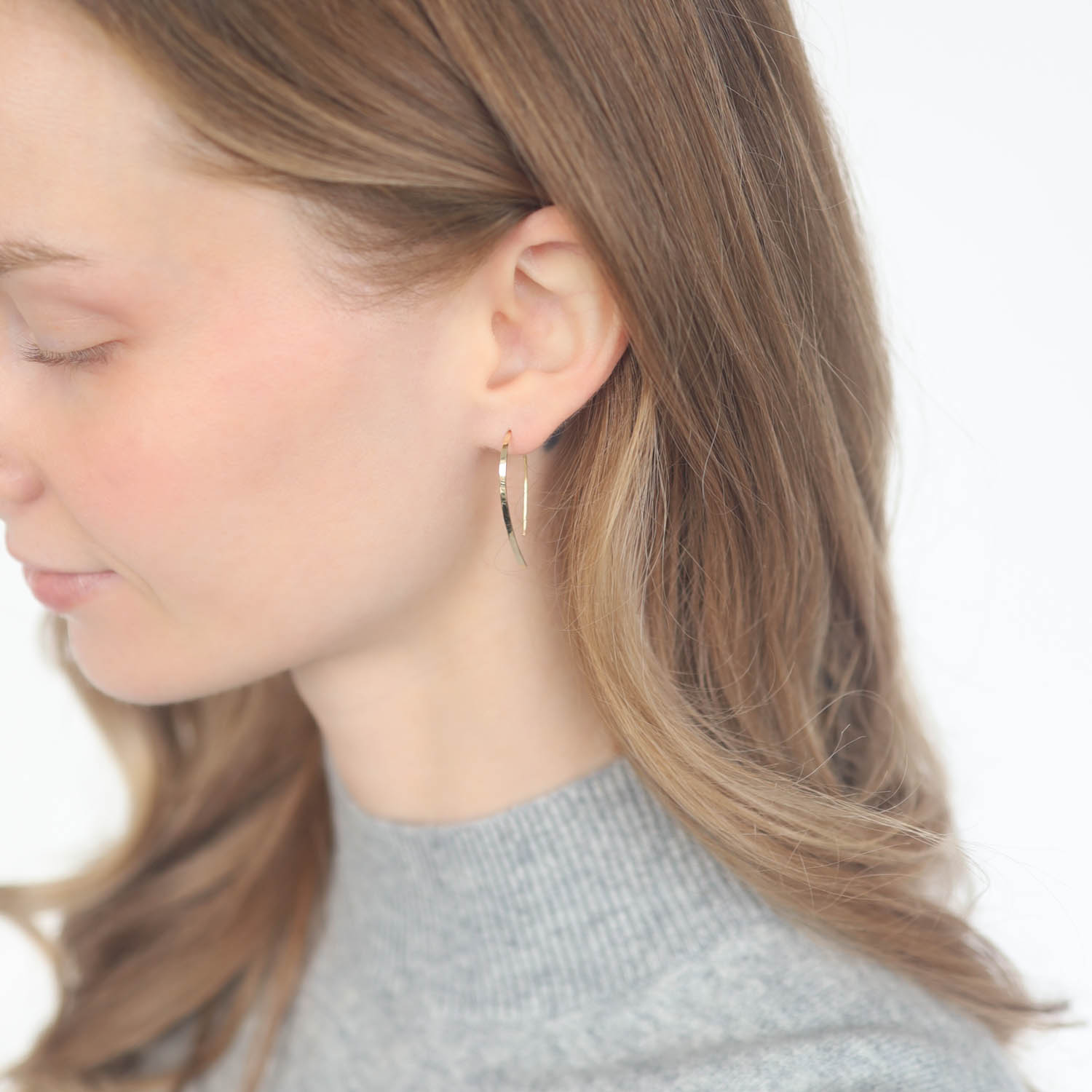 A modern take on a timeless shape, these thin half hoops are effortlessly elegant.